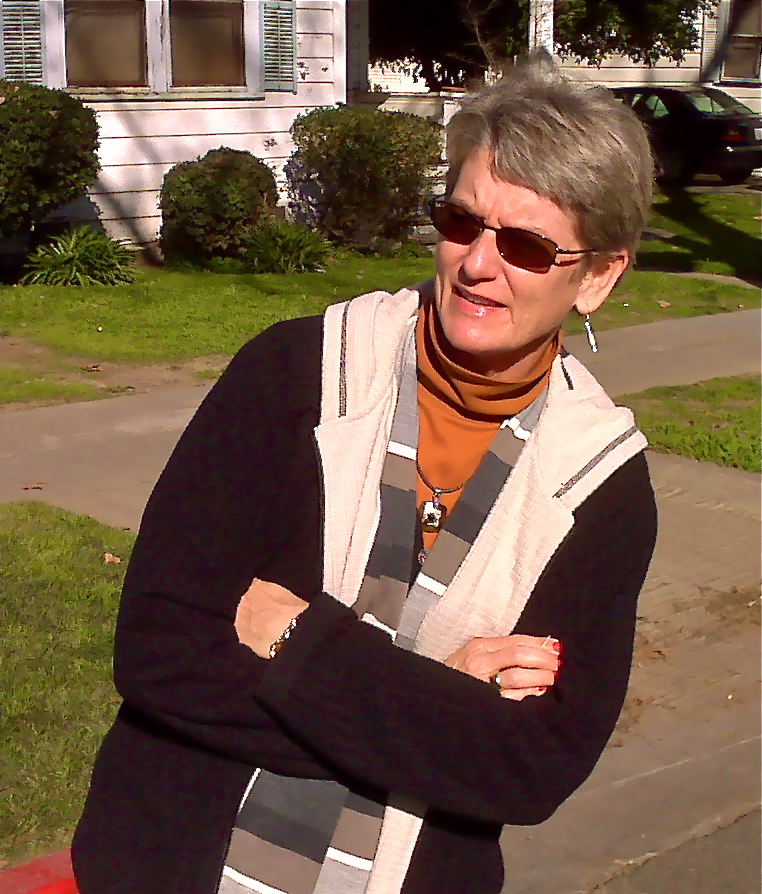 Could have chosen a smiley picture, there was one, but I liked this action shot better. Not sure why Jim snapped it at this rather scowly moment, but there it is. Just finished lunch at Bernardo’s and I think I’m watching a woman oblivious to the fact she’s about to back her car into me (I AM standing in the street..).