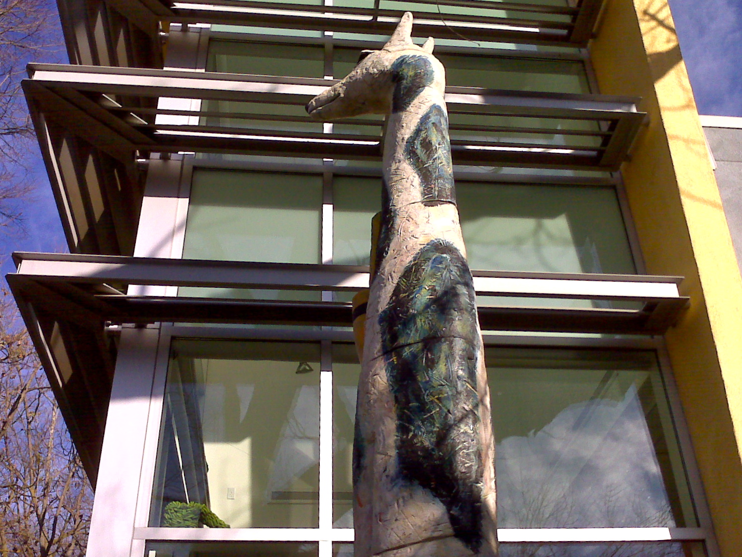 One thing to appreciate about Davis, especially on a fogless, perky winter day, is the art. There is a lot of art around town, thanks to the City’s commitment to its art in public places program. This ceramic giraffe keeps watch on the south side of the architecturally pretty interesting Pence Gallery on D Street.