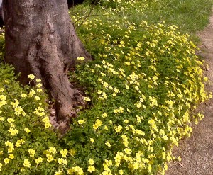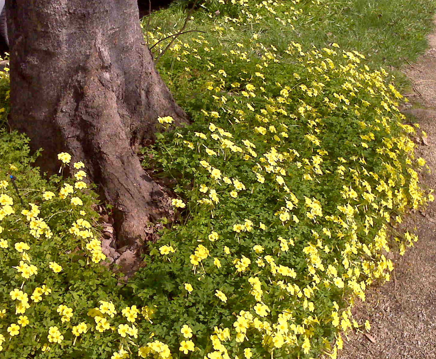 Spring, with its messy, cluttered, perky posies–spilling out, spilling onto and spilling over everything. I totally love a flower with an outside-the-lines kinda attitude, don’t you? This luscious, if disobedient, bit of Sour Grass was found in the lovely Old North Davis neighborhood, at about 7th and E…a perfect place to walk if you’re looking for sweet signs of unbound urban springness.