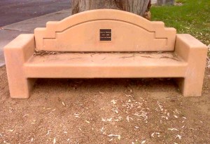 Here is the memorial bench that Jim, Peter and I had installed across the street just after my dad died. It sits beneath a eucalyptus tree, oriented toward our house. The picture way above is a close up of the plaque.