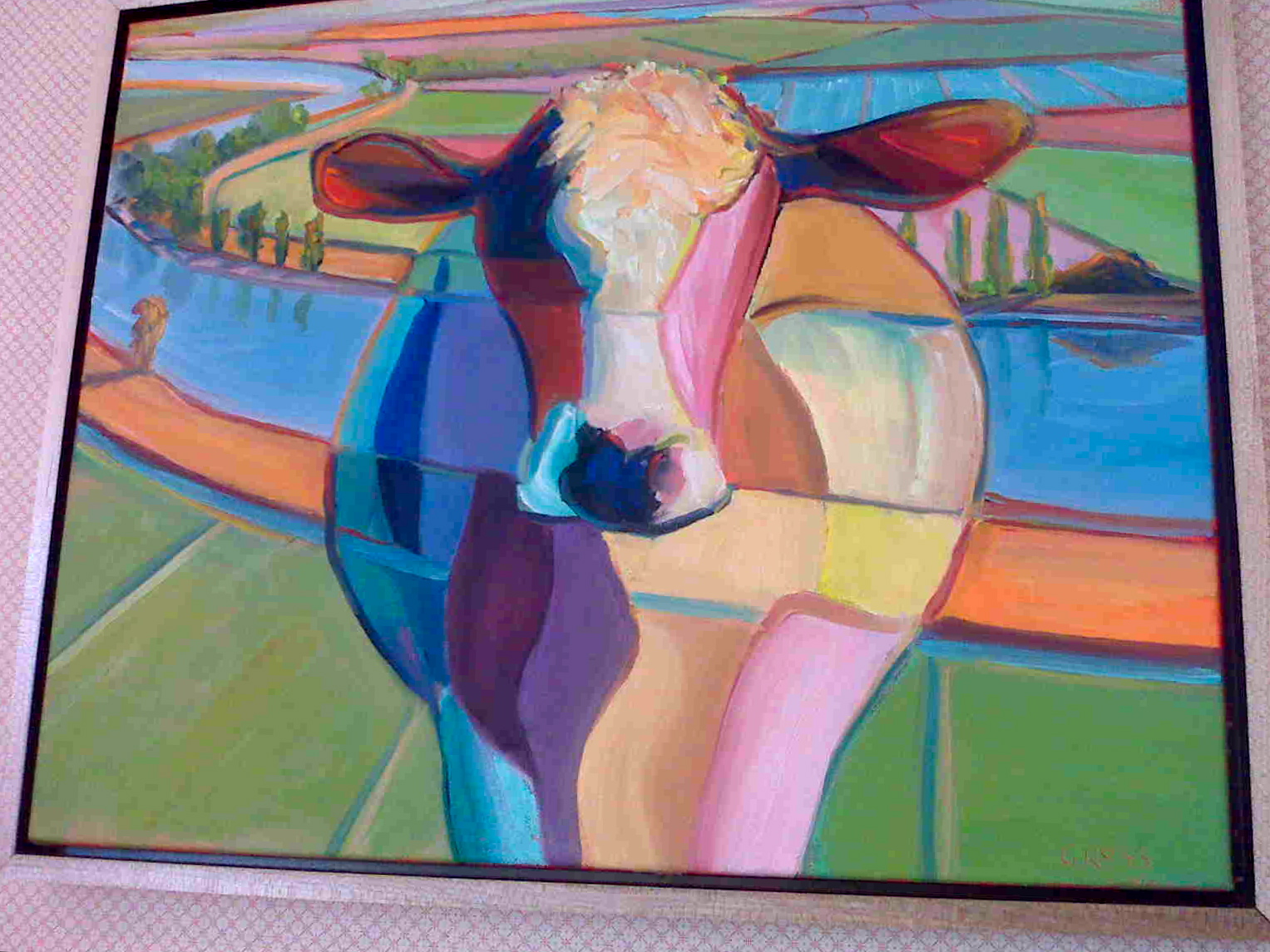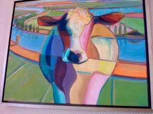 One of my favorite local artists, really one of Cowlifornia’s best, is Phil Gross, whose paintings cowver the walls of this charming cowfe, including the cowlorful one, above. It’s no Moona Lisa, but it’s a nice cow portrait nonetheless.