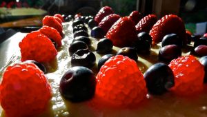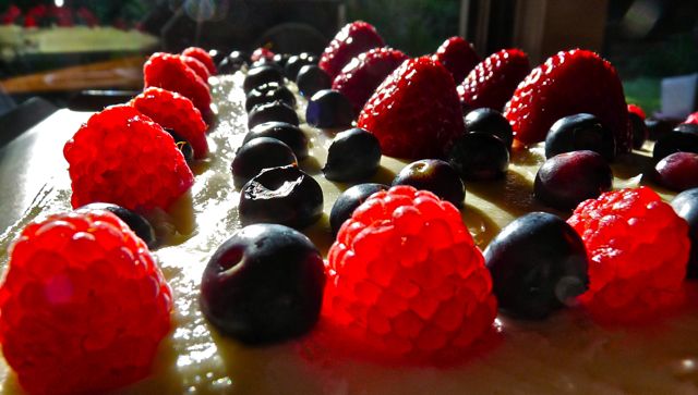 Here it is from on high.  Looks pretty, huh?  The frosting was exceptional and the berries were pretty good, but looks and good frosting don’t tell the full story.