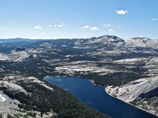 Anyway, got to the top (10,301′) and had phenomenal views all around. Here is the view looking northwest and down on Tenaya Lake, and Mt. Hoffman, highest peak in background (centermost peak in Yosemite National Park, 10,850′) which we’ve climbed several times:
