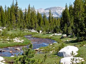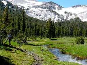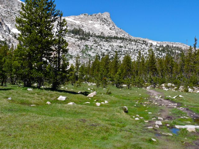 The trail to Elisabeth Lake starts right at the Tuolumne Meadows campground, a place we tend to avoid for the crowds. In all these years, it was the first time we’d taken this trail. Amazingly, the trail was reasonably spare of people.