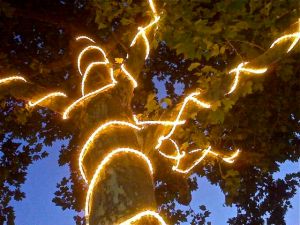 Note 2: The picture is taken down the street from the church, looking up a lighted tree, on my walk home.. via Newsbeat for some candy..]