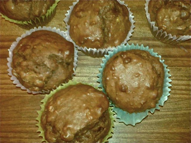 These blurry things are banana chocolate walnut muffins. (And, “they’re alright.”)