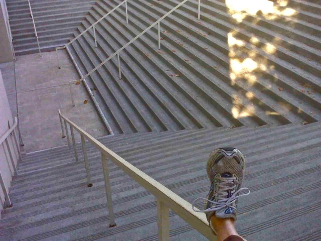 This is the humanities building, corner 3rd and A. If one lives at 6th and A, it’s a short walk to an awesome place to stretch and do stairs. Mostly stretch.