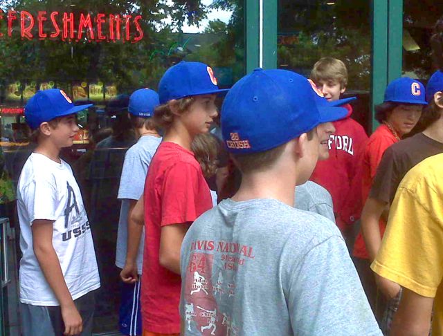 It’s not a great photo, but you get the idea: young baseball players go to matinee to see a baseball movie featuring their coach in a bit part.