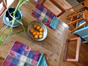 What makes this a Christmas table are 1) the mandarins and 2) the amaryllis — gifts we receive each year from our good friends Susan & Jim. There is much to cherish in that friendship (and it’s not just the Christmas goods).