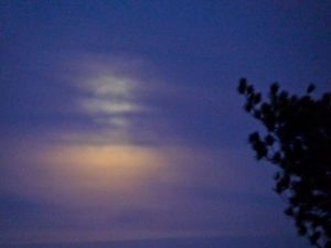 Quickly, she (the moon) disappeared into a thin bank of clouds and looked rather ghostly: