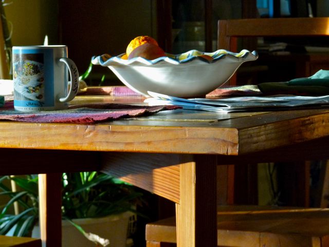 Here he is (meet Jay) later in the morning (the daylight part of the morning), sippin’ coffee at my favorite coffee joint.