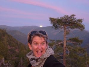 Poor California. No snow. Record breaking lack of snow. Which made our annual snow shoeing trip to the top of a ridge (usually high above Donner Lake) to watch the sun set in the west and the full moon rise in the east a bust, at least as far as snow shoeing goes. Instead, we hiked on a dirt road to a place called Iron Point, and watched a lovely sun set, thanks to a few well placed bands of clouds, and a sufficiently dramatic moon rise over mountains and trees.