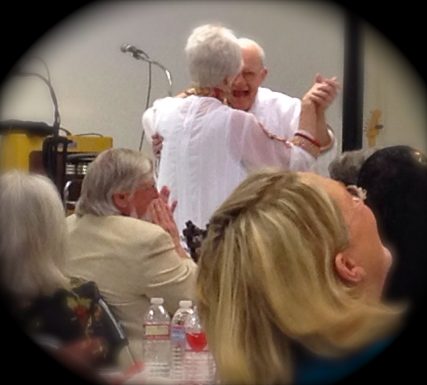 This was actually Saturday. John and Judy exchange vows in a large community hall. Hundreds of friends show up to support, dance, schmooze. It was even a potluck.