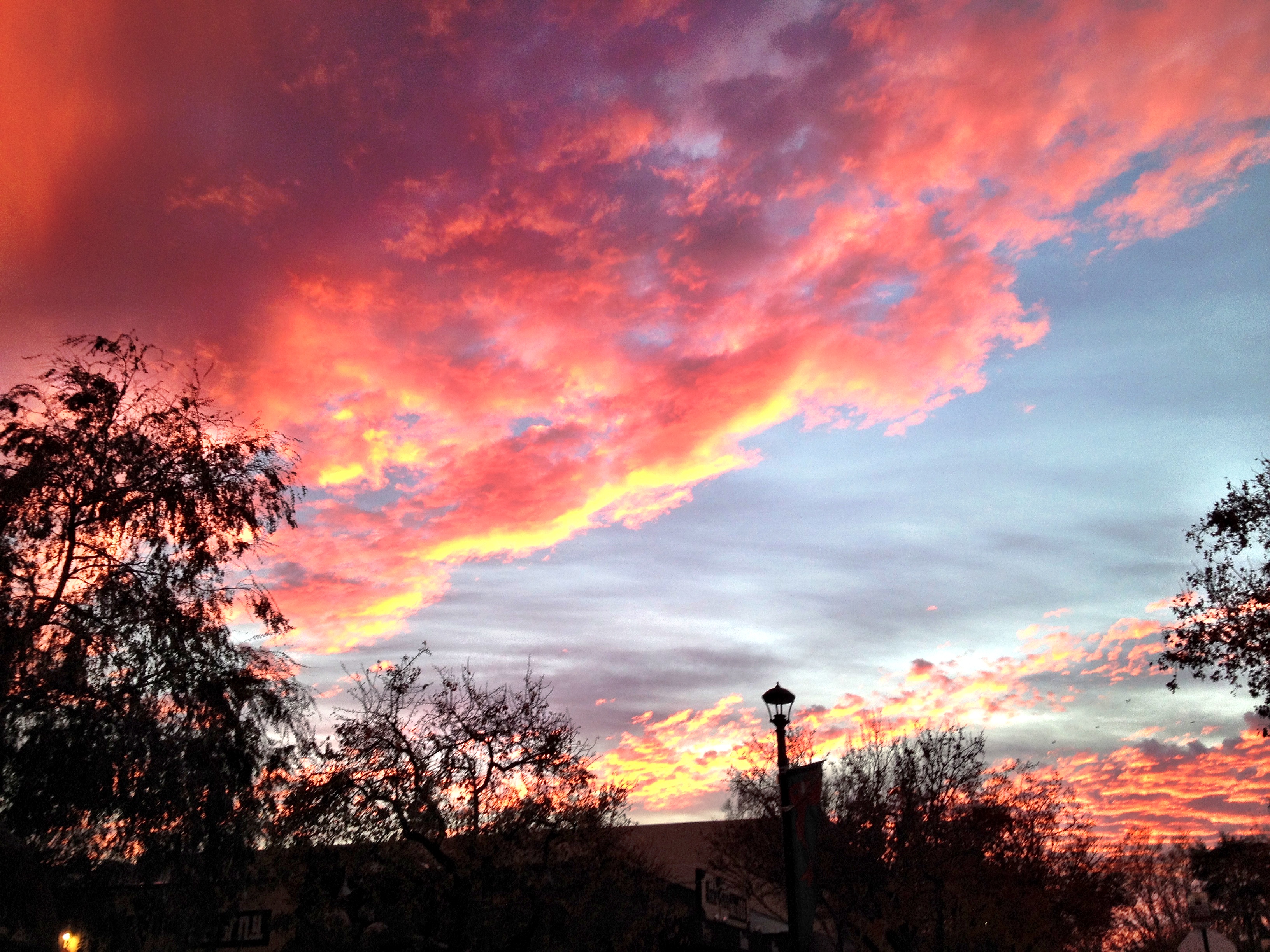 So, no great pictures from today… instead, I’m posting this ho hum sunset from three weeks ago. I was downtown when I took this, and noticed people stopping all over and whipping out their phones to get photos.  It was spectacular enough that I saw multiple versions posted on Facebook from friends in Davis who were all witnessing it simultaneously.  It was great in all directions; seemed the heavens were on fire.