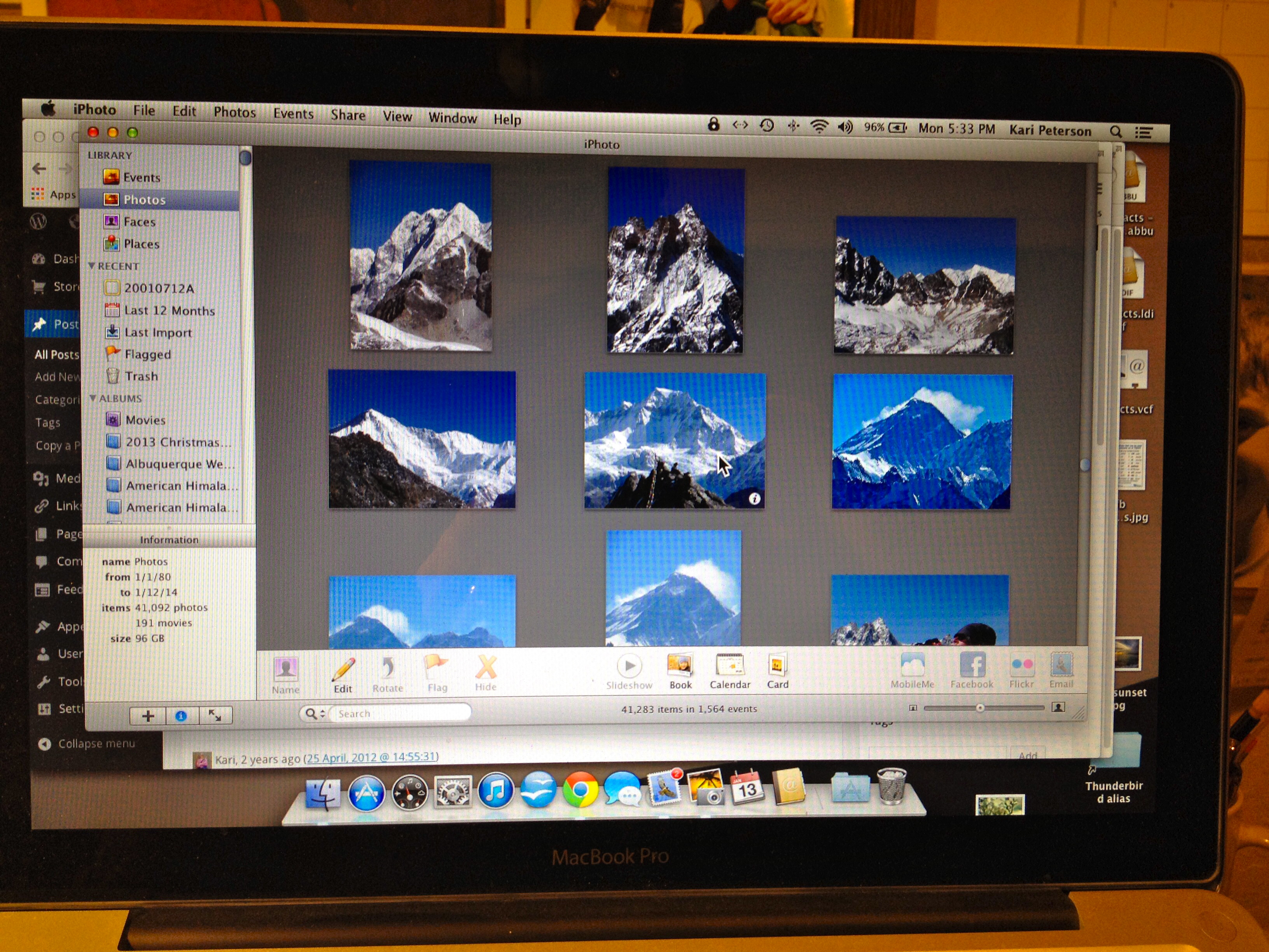 And here’s where I get my photos… all consolidated in iPhoto…833 taken by me, and 1,823 taken by the other four in our group, for a total of 2,711 photos to look through to find the perfect ones to capture our experience! All fabulous photos, too. All have been carefully organized so it’s not as tedious a process as it may seem.