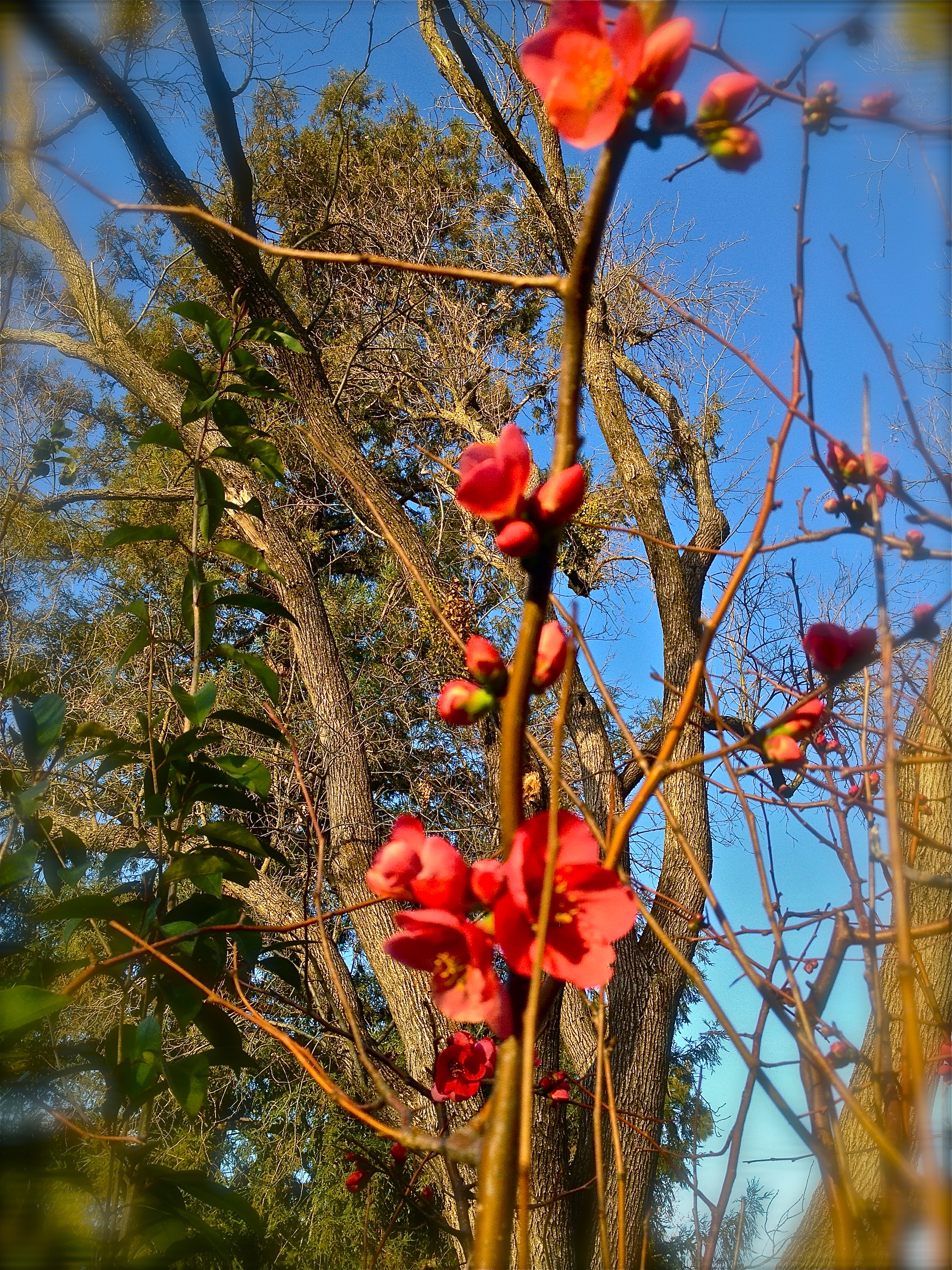 Our flowering quince is usually an early bloomer, usually in the first week in February, but I can’t remember a time it was this early. Before my birthday, for goodness sakes.