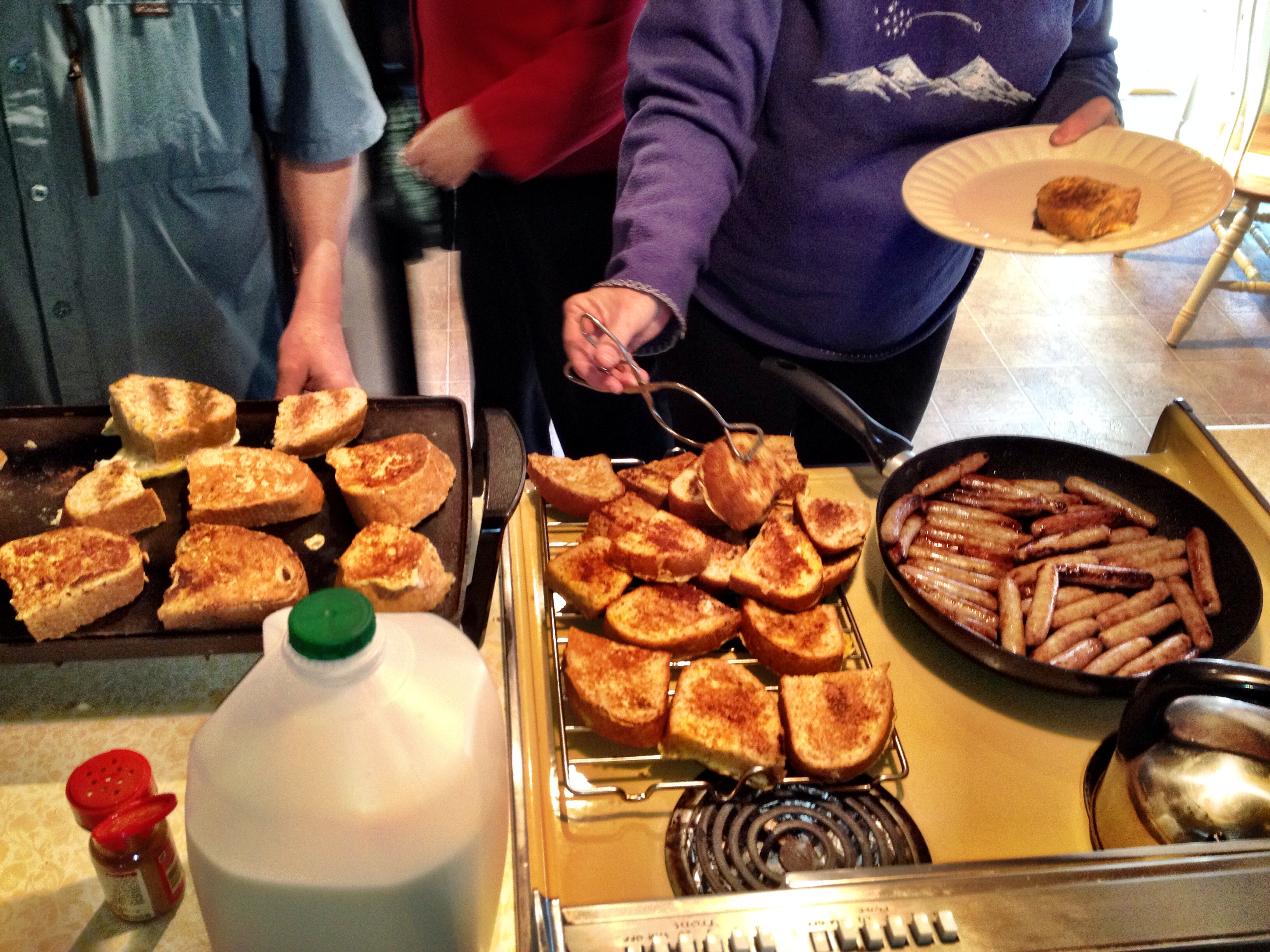 We had a great lasagne dinner with the best garlic bread ever (made with rosemary chibata, try it). Here are Carrie and Darlene.