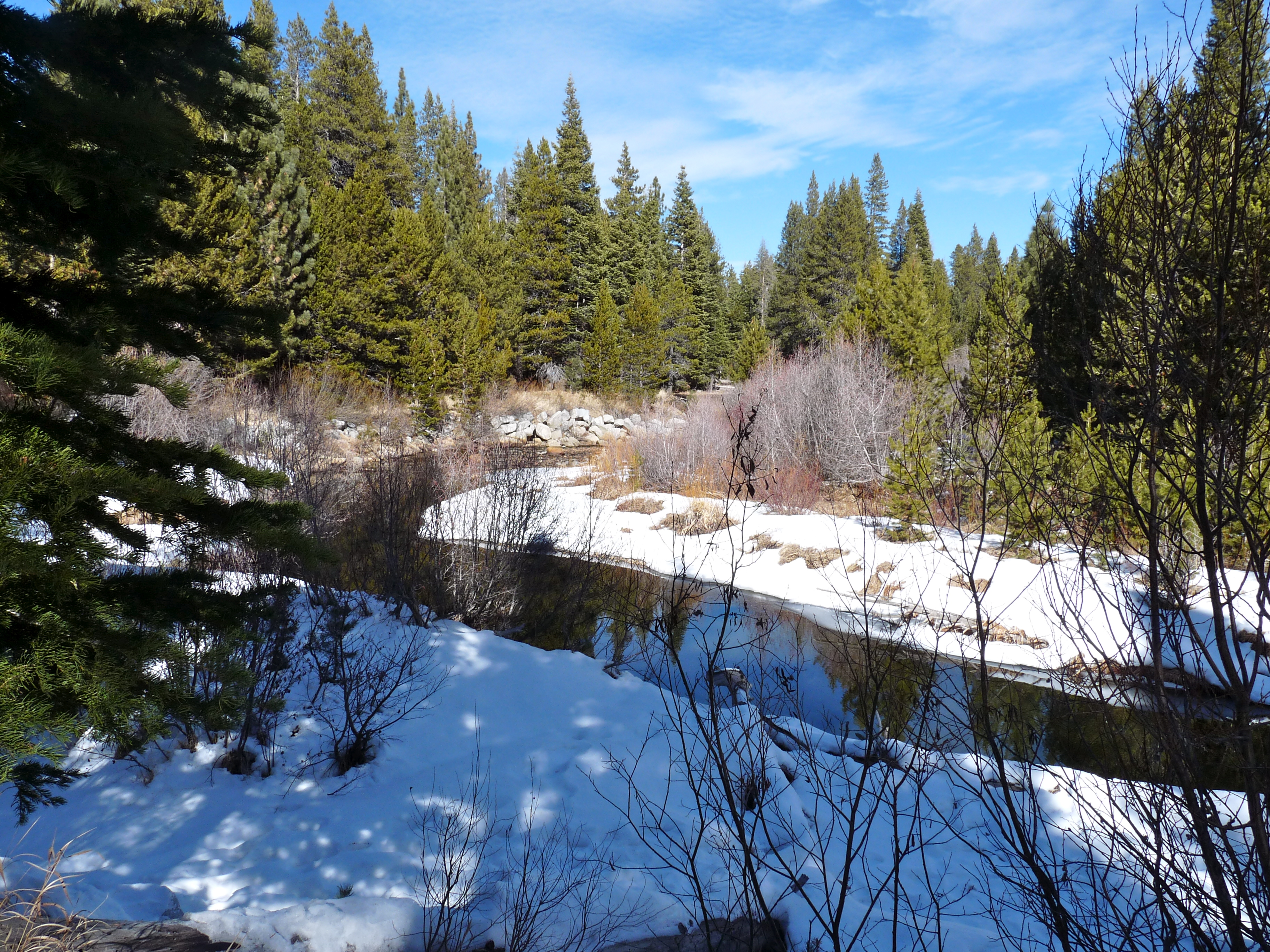 After breakfast, I decided to take a walk, if short, along the Truckee River… just out the back door and down the hill. Went looking for teen sledders–thought I’d take some action shots–but their sledding adventure, unbeknownst to me, had been aborted due to icy snow and not much of it.