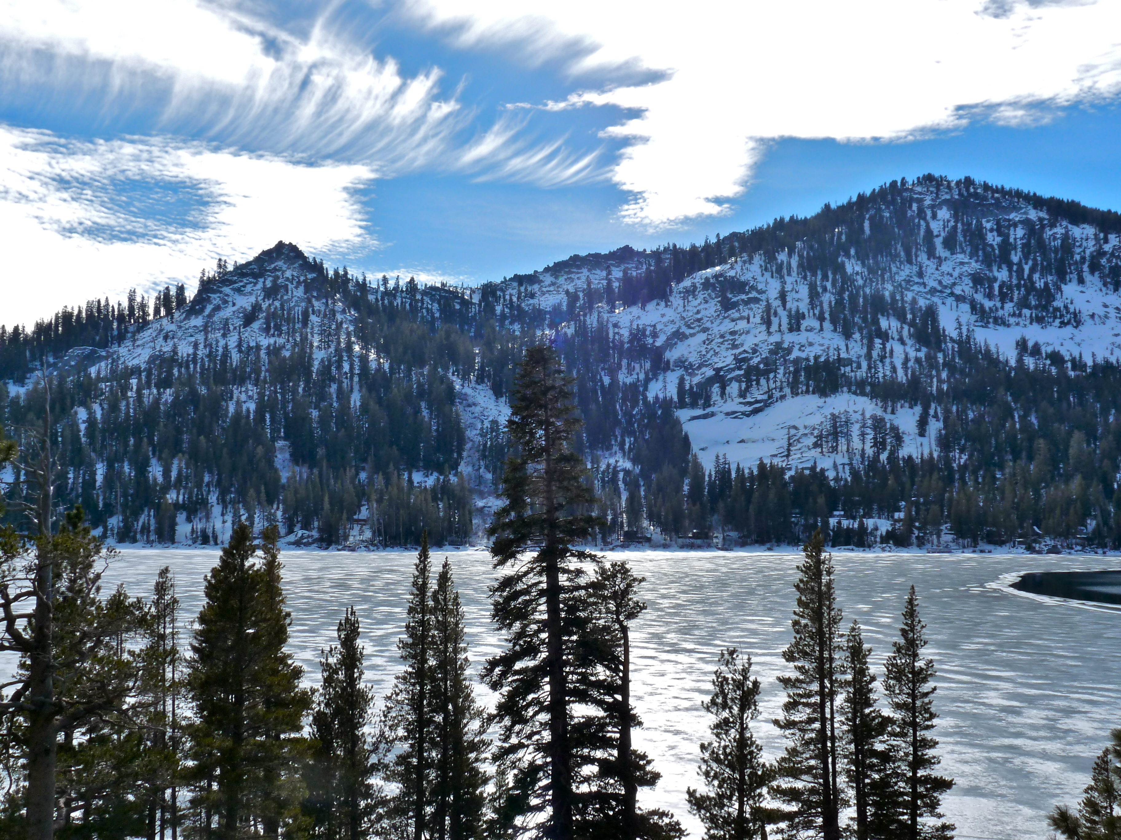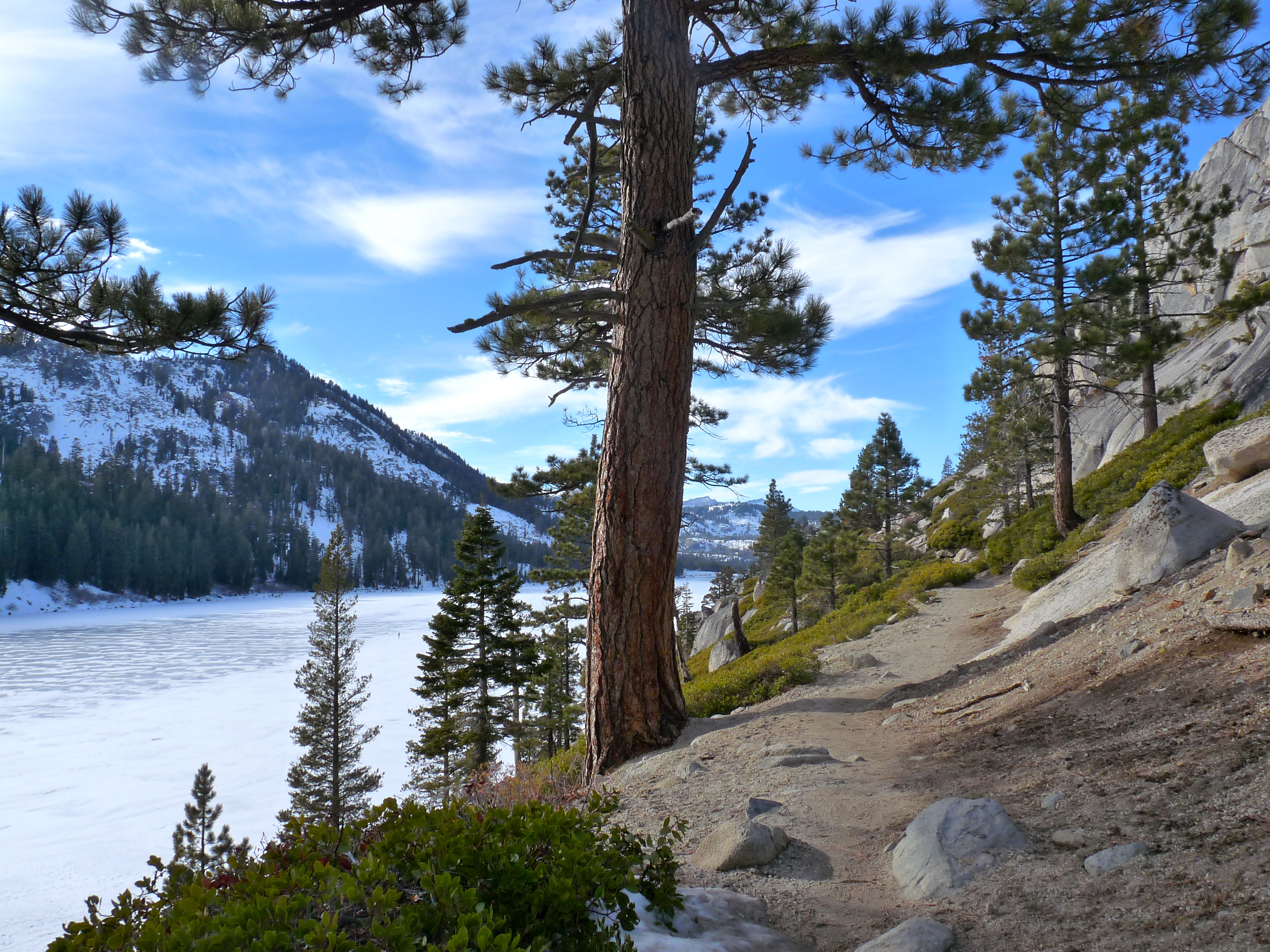 We hiked north on the Pacific Crest Trail, along the edge of Lower Echo Lake. The trail was largely free of snow and ice, and except for the frozen lake, everything looked very normal.