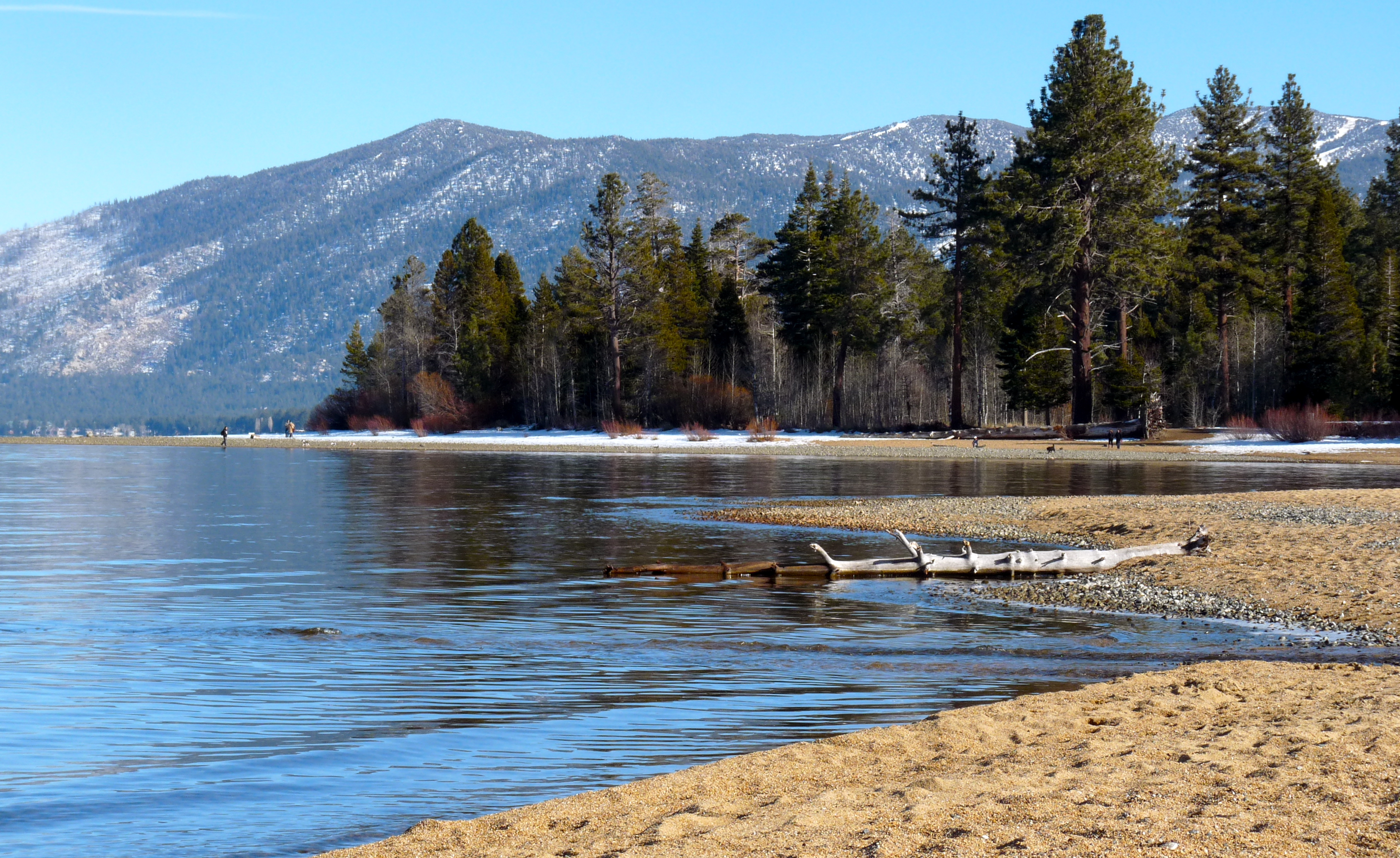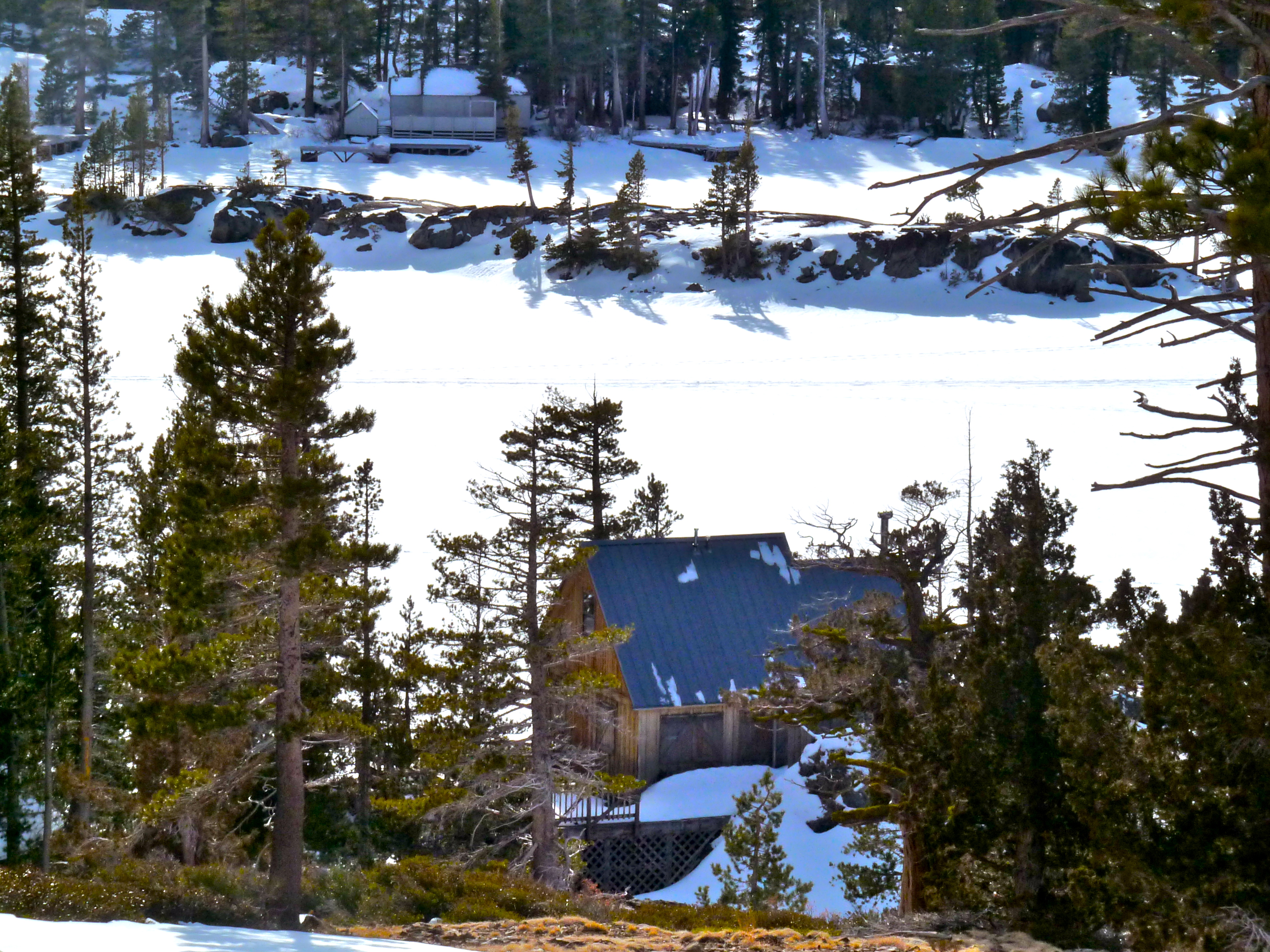 We found a reasonable place along the Echo Summit road to leave our cars, and walked down the rest of the unplowed road to the Chalet. The sight of the frozen, boatless marina under a bright, sunny sky was weird, but kind of exciting.