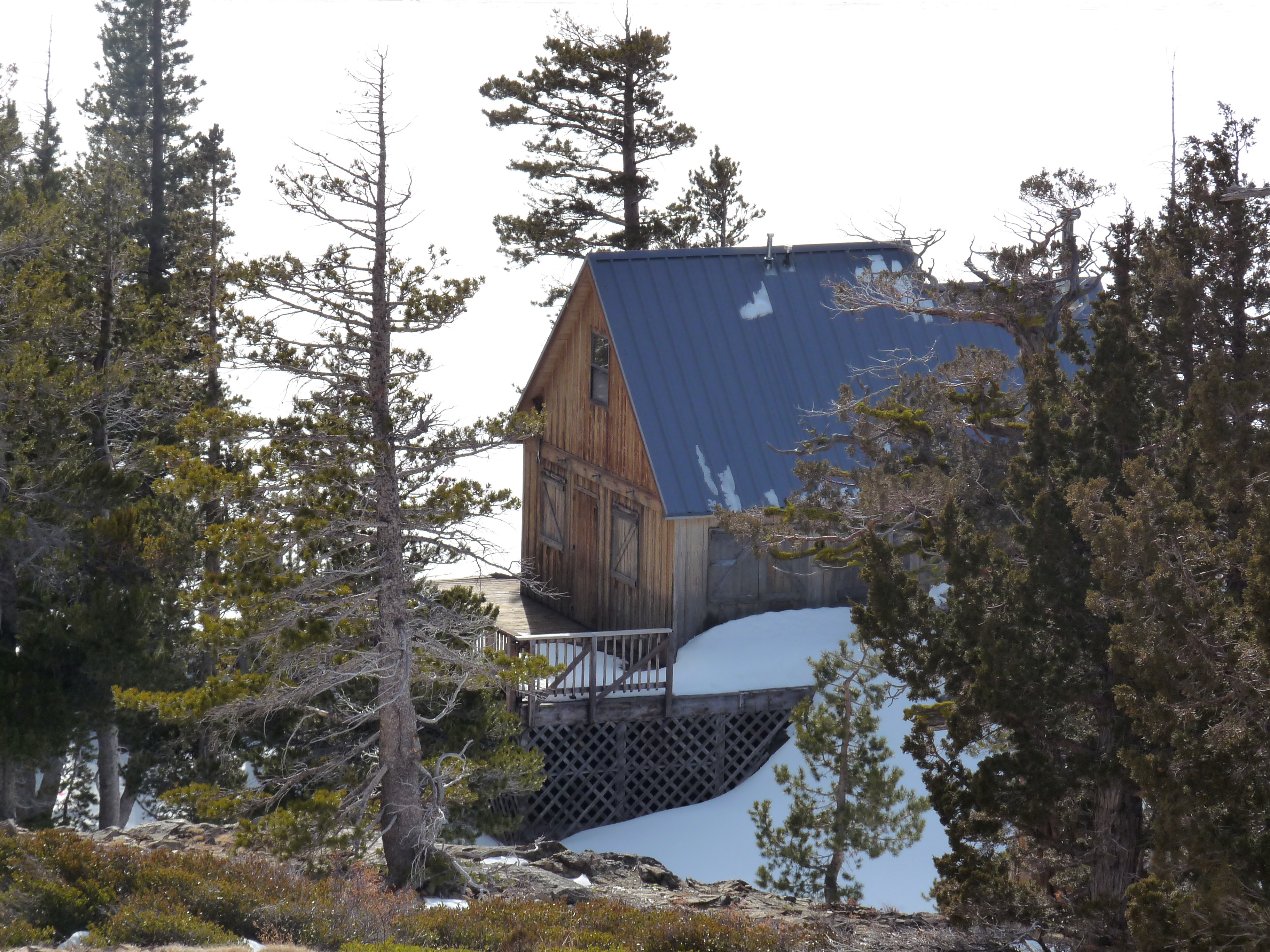 Made it to the Ricker cabin. Here’s the deck we sleep on, on warm summer nights, and that’s the very frozen Upper Echo Lake on the other side of the cabin: