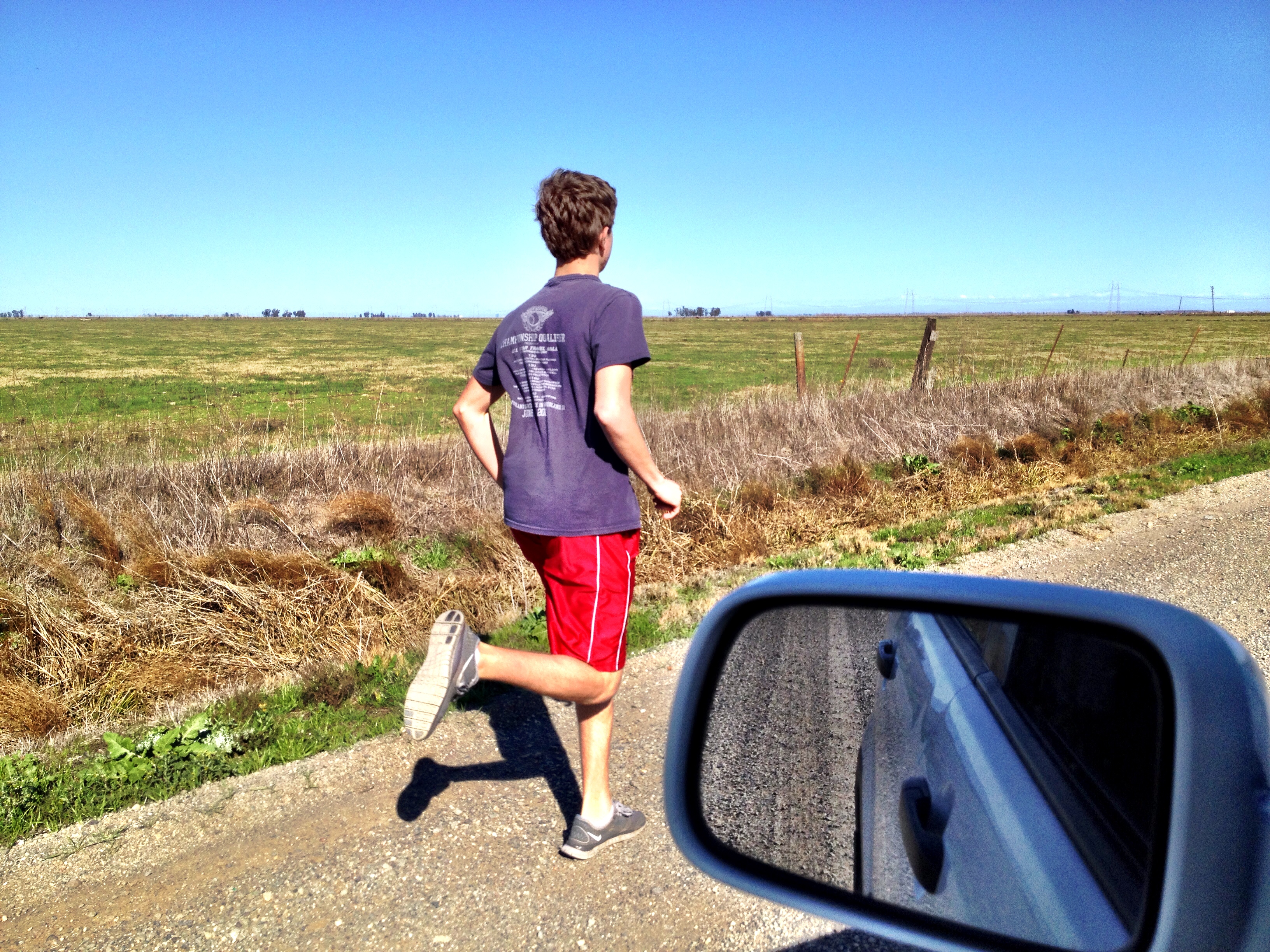 On this particular driving expedition, somewhere south of Davis, along a gravel road, surrounded by mooing cows, Peter decided he wanted to race the car. Inexplicably, I agreed (I’m that mom):