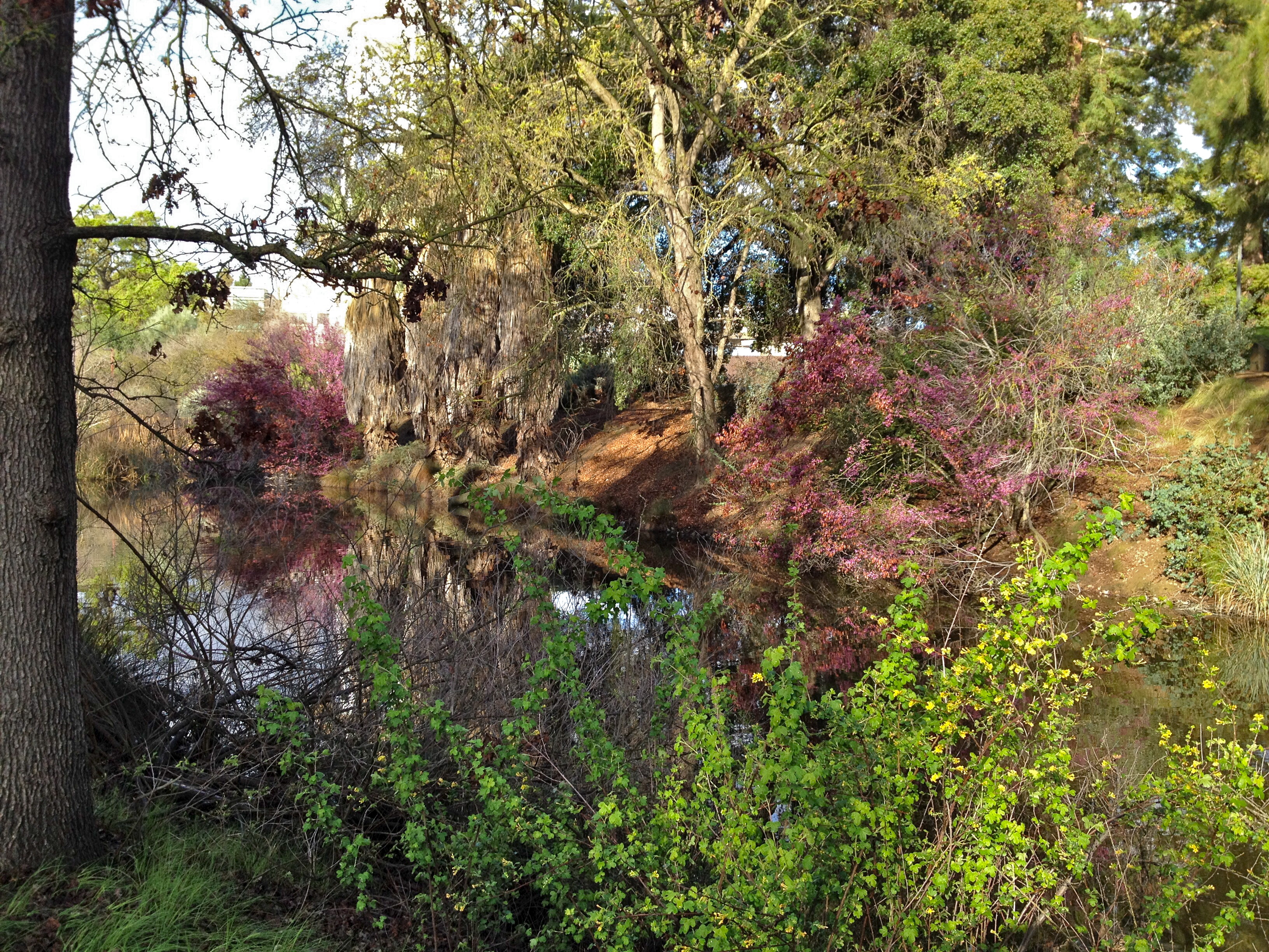It’s a trail that parallels the creek on the south side and heads westward until it merges with the regular old paved path at the western-most turnaround point. We picked it up just beyond the Mondavi. It’s not all outstanding, but parts are, like this: