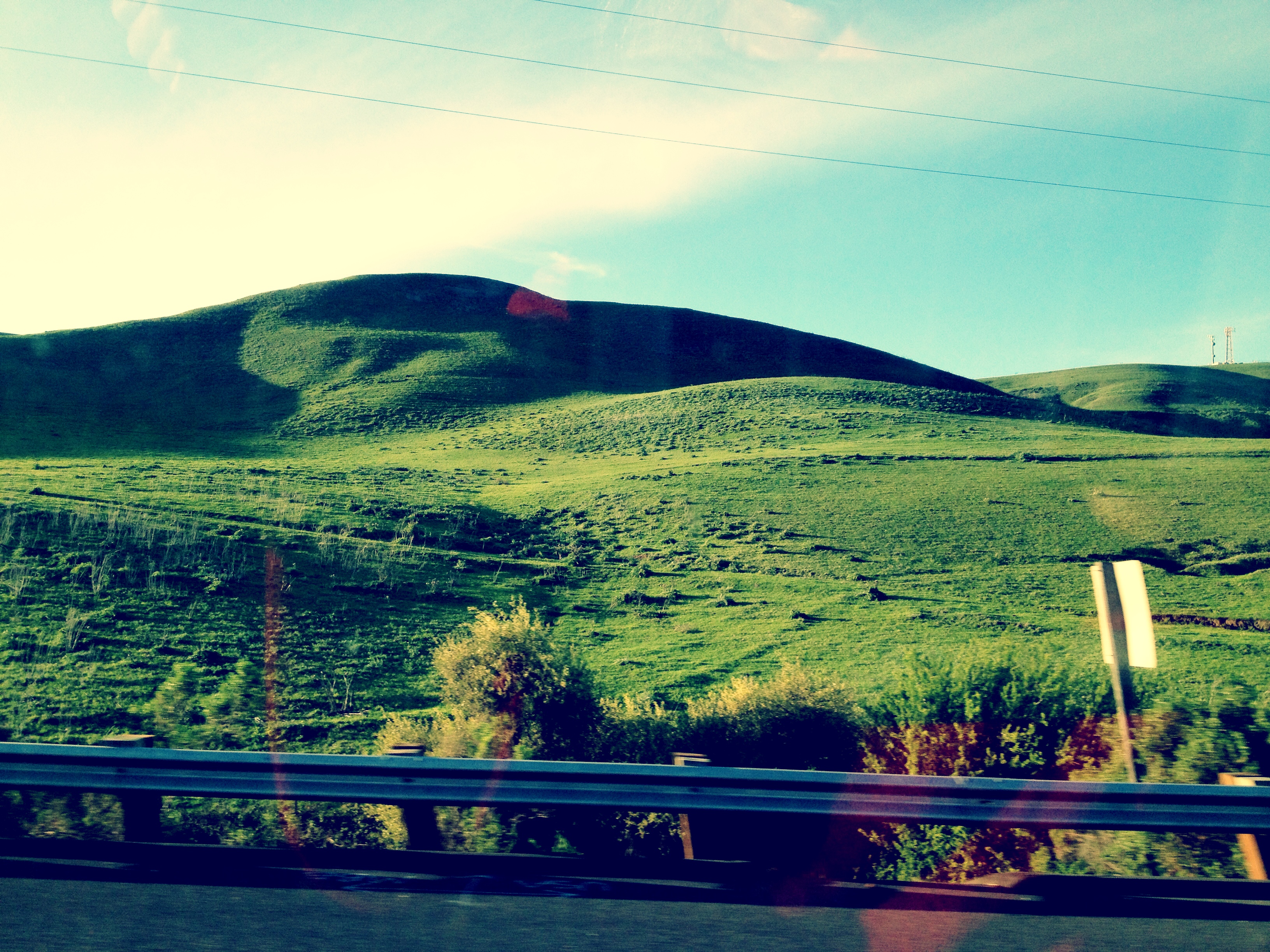 Well, I didn’t take a picture of Maia and Bernie, but that’s where we were going when these emerald hills whizzed by–to see Maia and her new boyfriend Bernie.