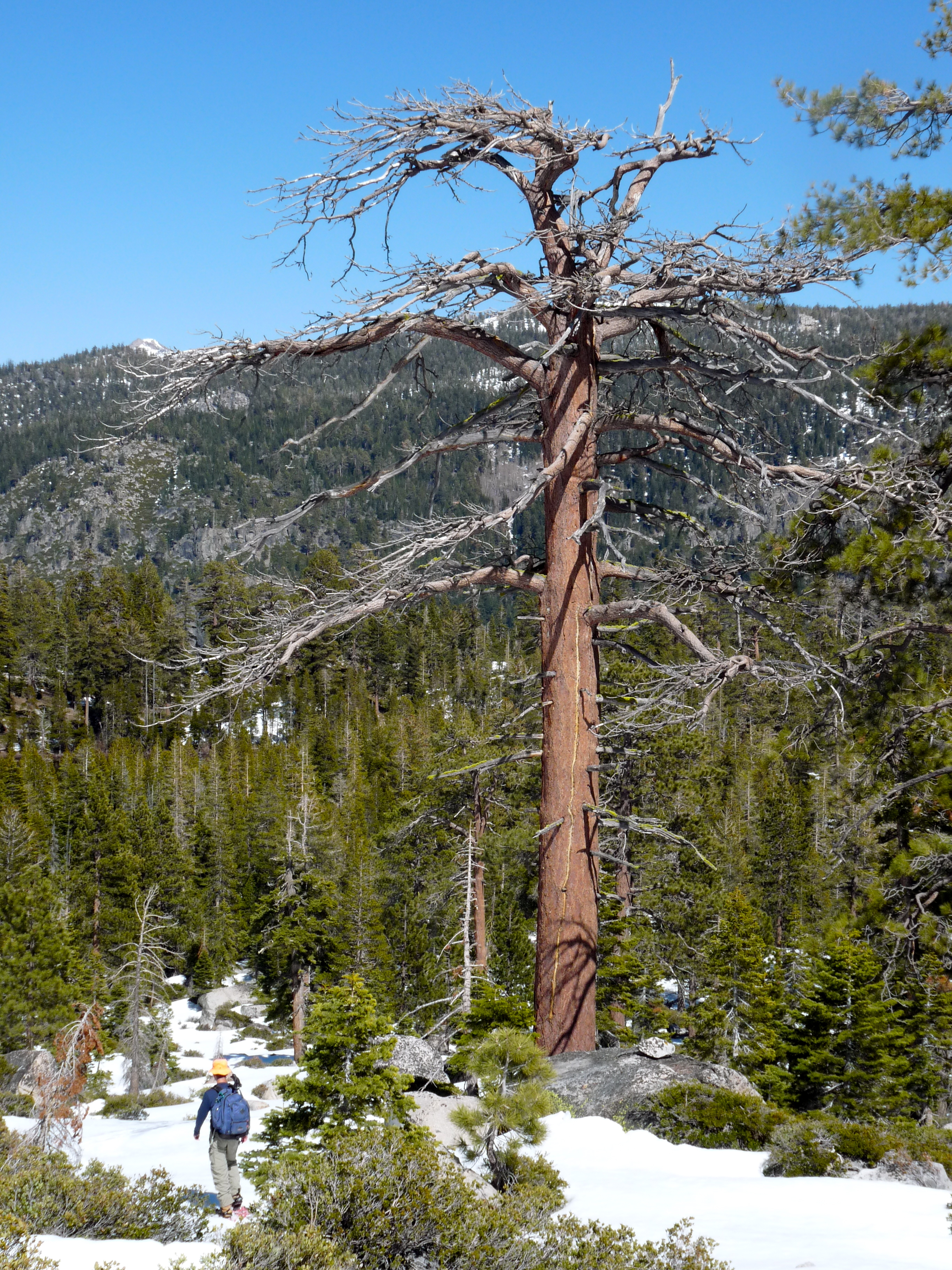 Then after about 30-40 minutes, headed down again into the canyon. Passed this beautiful–dead–Jeffry Pine (or possibly Ponderosa):
