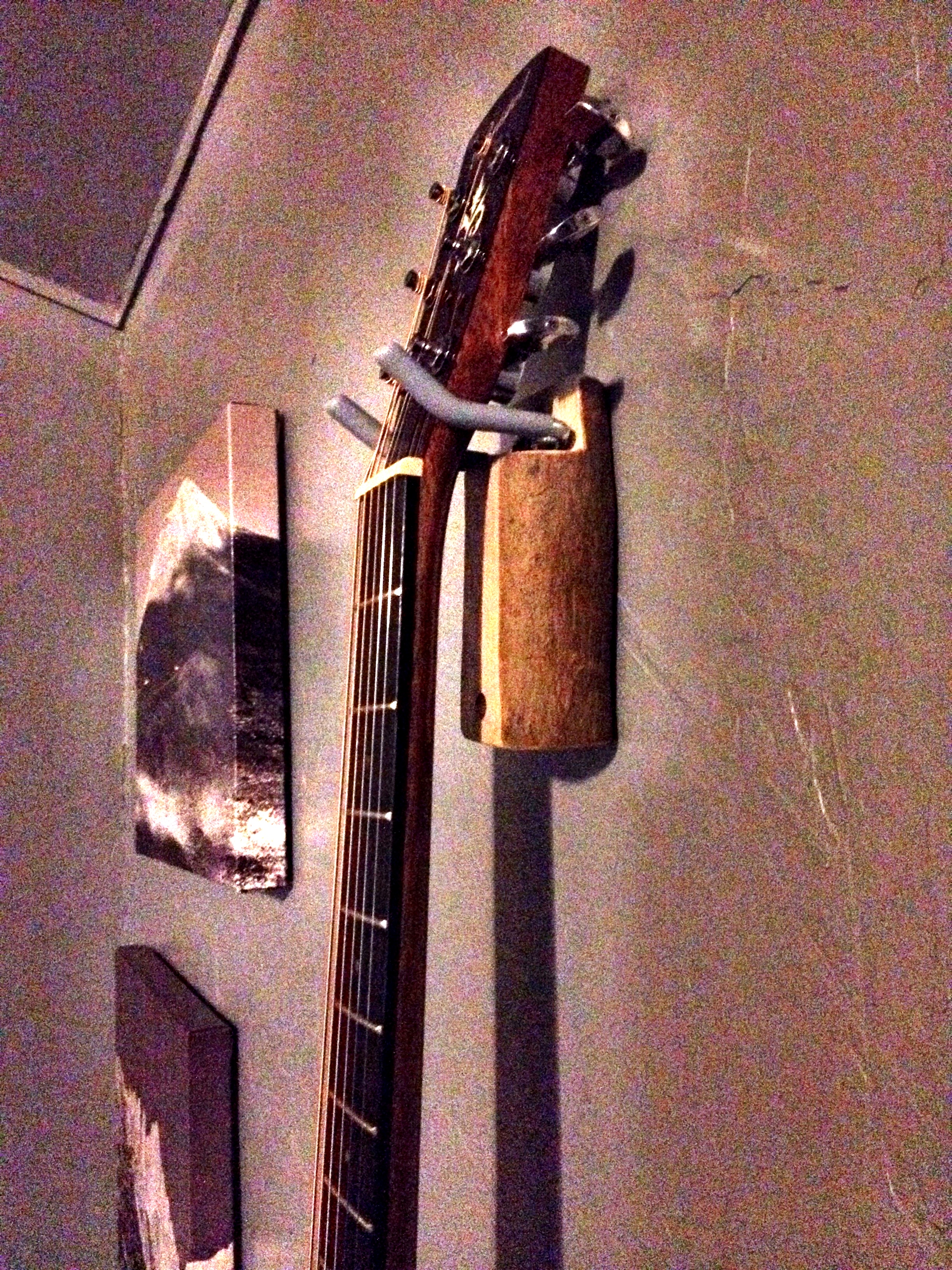 The sycamore branch mount will go somewhere on a wall in Peter’s room so the guitar will be at the ready any time. That is very cool, no?