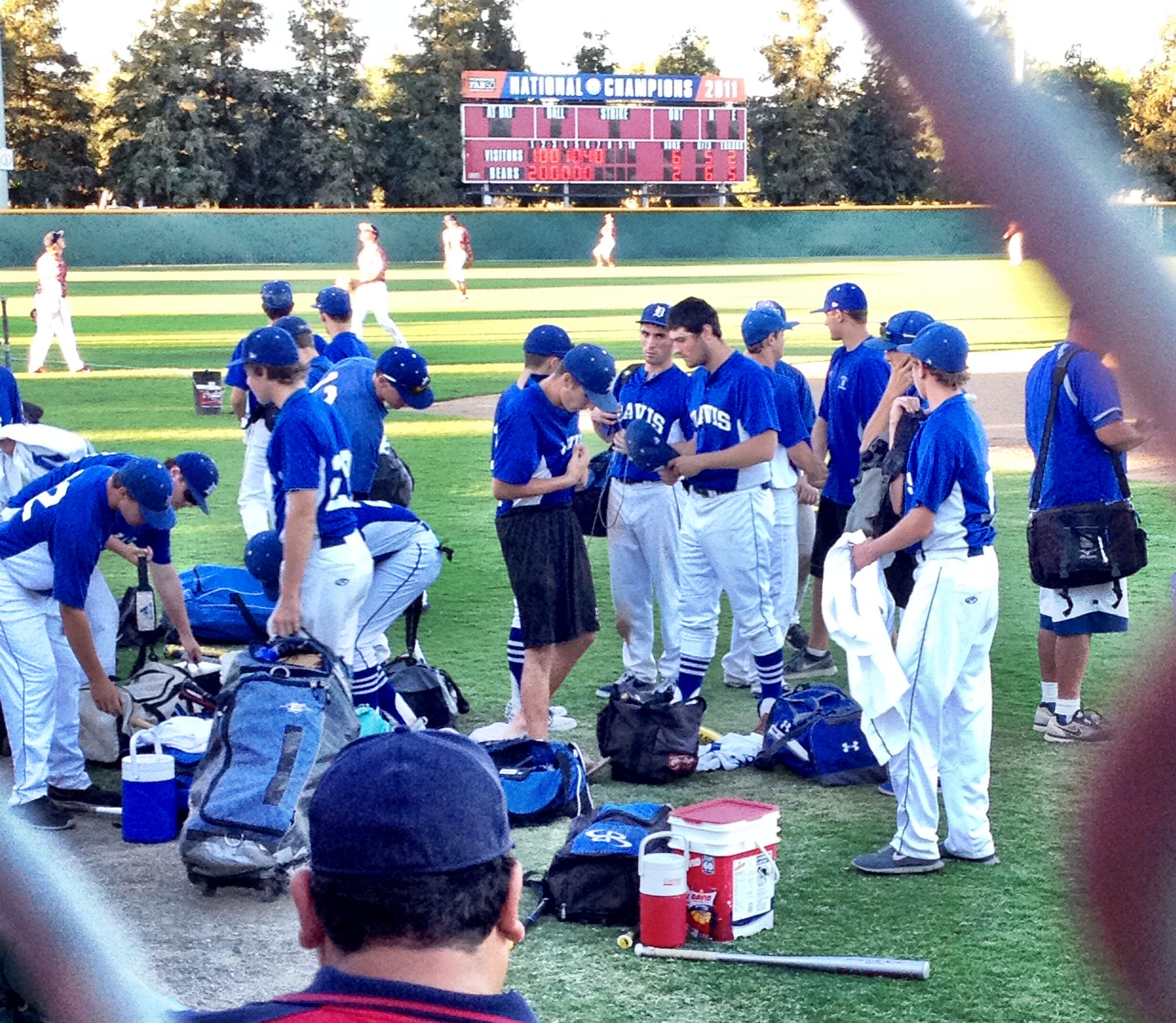 Beautiful Fresno. What makes it beautiful is its view of the Sierra and its proximity to Yosemite… certainly not its miles and miles of urban sprawl in an endless grid configuration and strip malls on every block. None of that matters, as this trip is more about the experience of playing here with the Davis varsity team in this elite annual high school tourney–the Buchanan Tournament. I won’t say much more about it since Peter won’t be playing until Sunday, but he’s getting some good dugout and social time. So far, so fun.