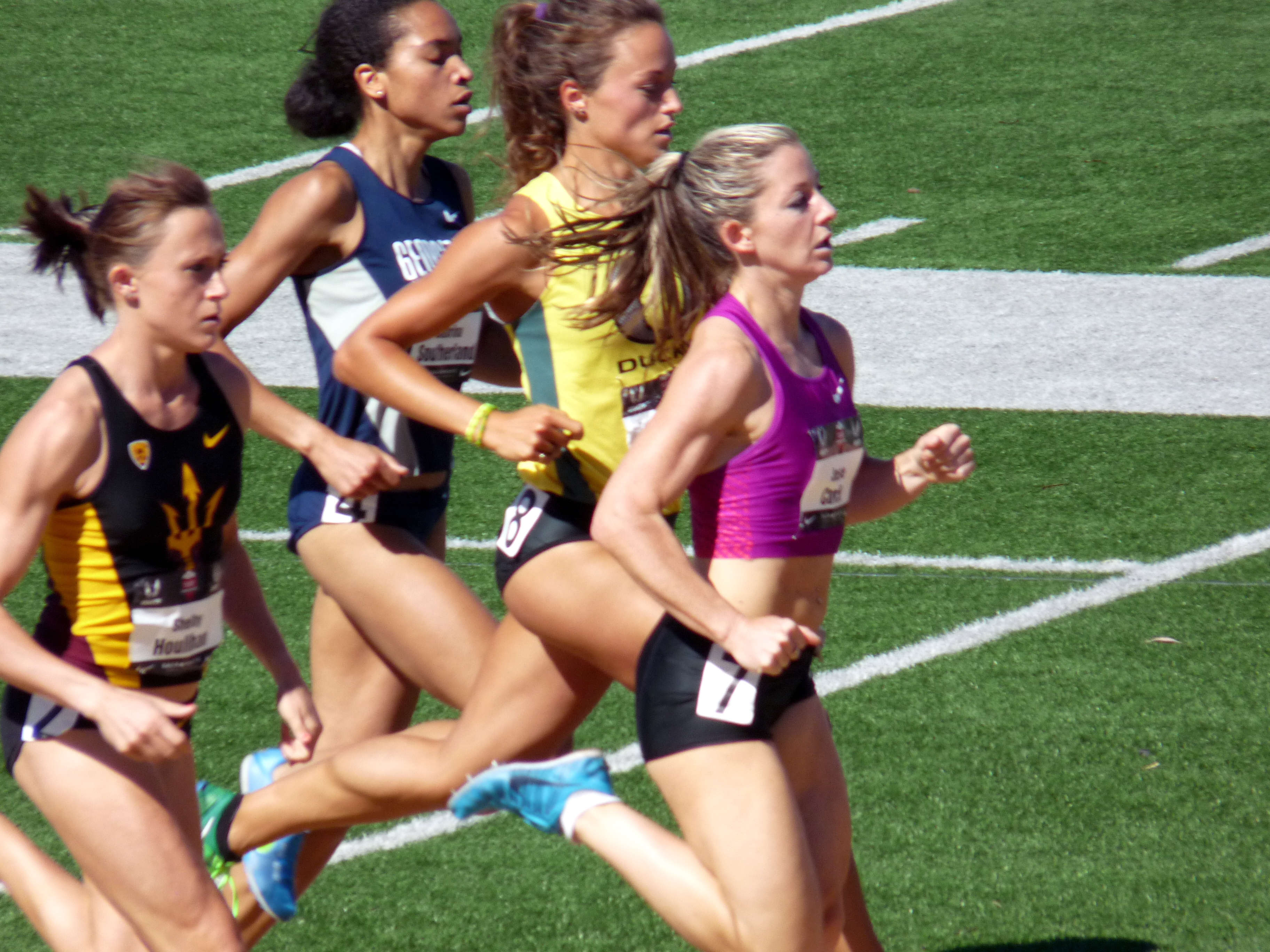 We got there just as the 800 heats were starting. This is a very pregnant (34 weeks) Alysia Montano. She’s the five-time national 800m champion and was not expected to win, but it’s cool she ran: