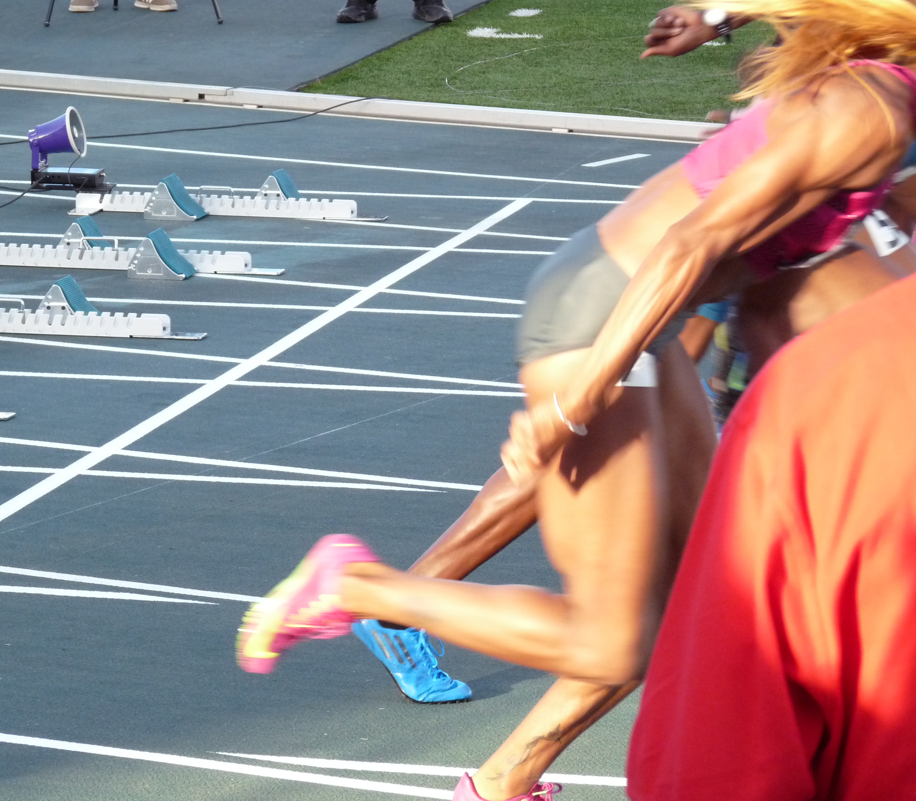 Pre-race concentration. This is Allyson Felix who won gold in the 2012 Olympics in the 200m (my favorite race). She’s won three gold medals so far and seems to be going strong. I’m pretty sure she qualified to move on.
