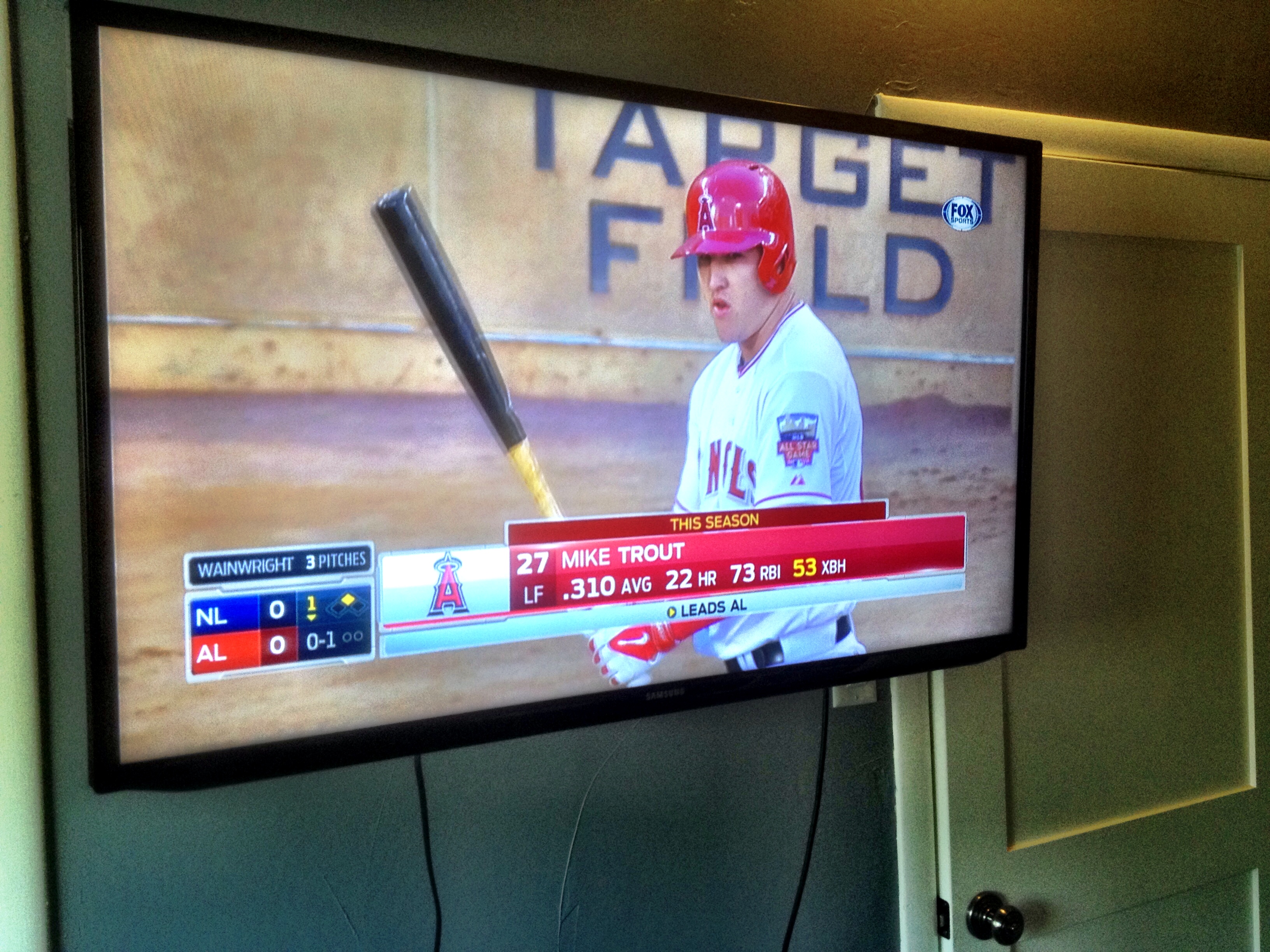 But tonight, as it was the All-Star game, we did. We set up a card table in Peter’s room and the three of us actually ate dinner in there. Peter’s a huge Mike Trout fan so, seeing as he was named the MVP of the game it was a great night. Trout went 2-for-3, including a double, scored a run and drove in two. He also made a nice play in left. And he’s 22 and it’s his third appearance at an All-Star game and we saw him play in Anaheim a couple years ago. And… Mike Trout.