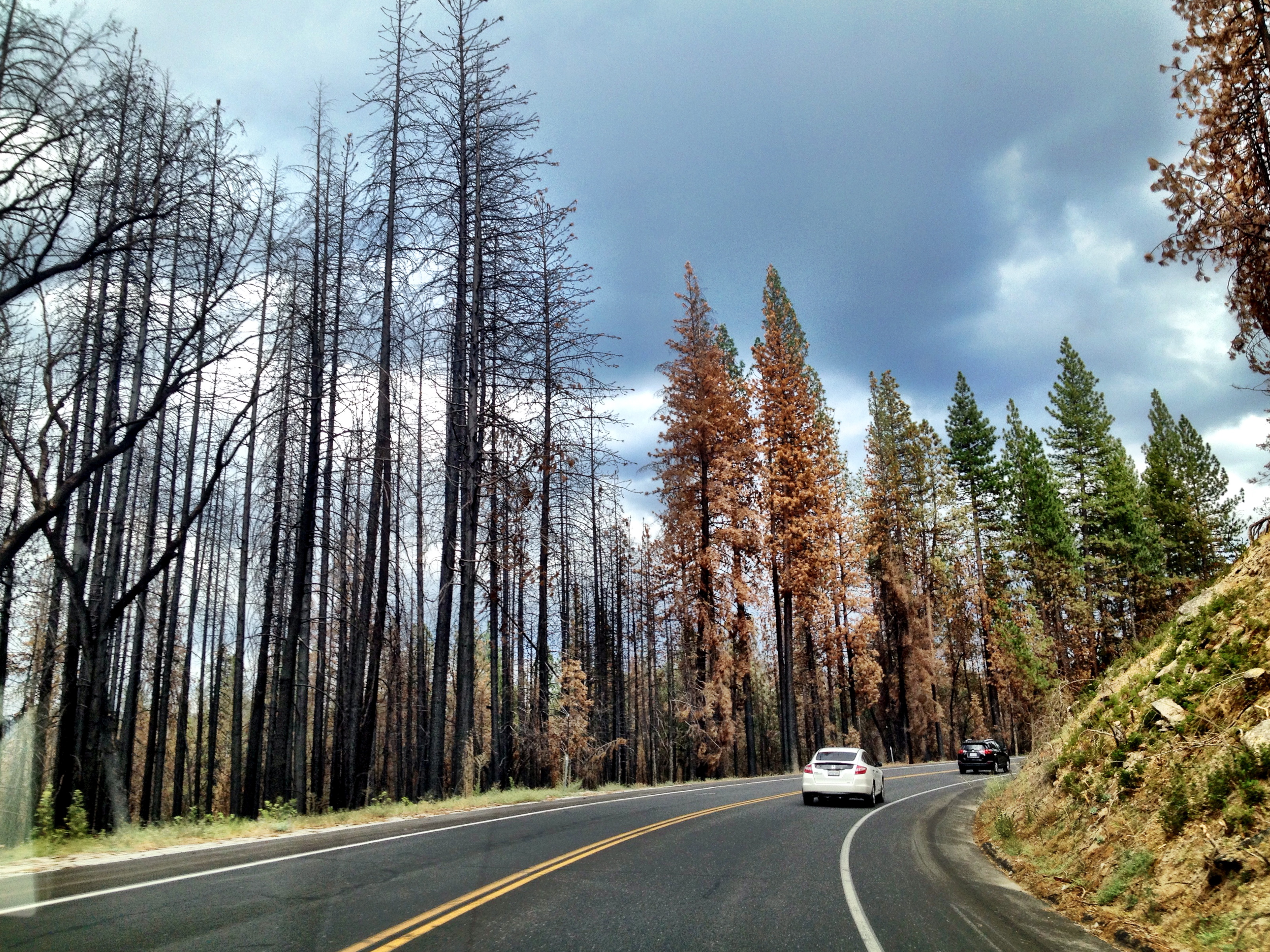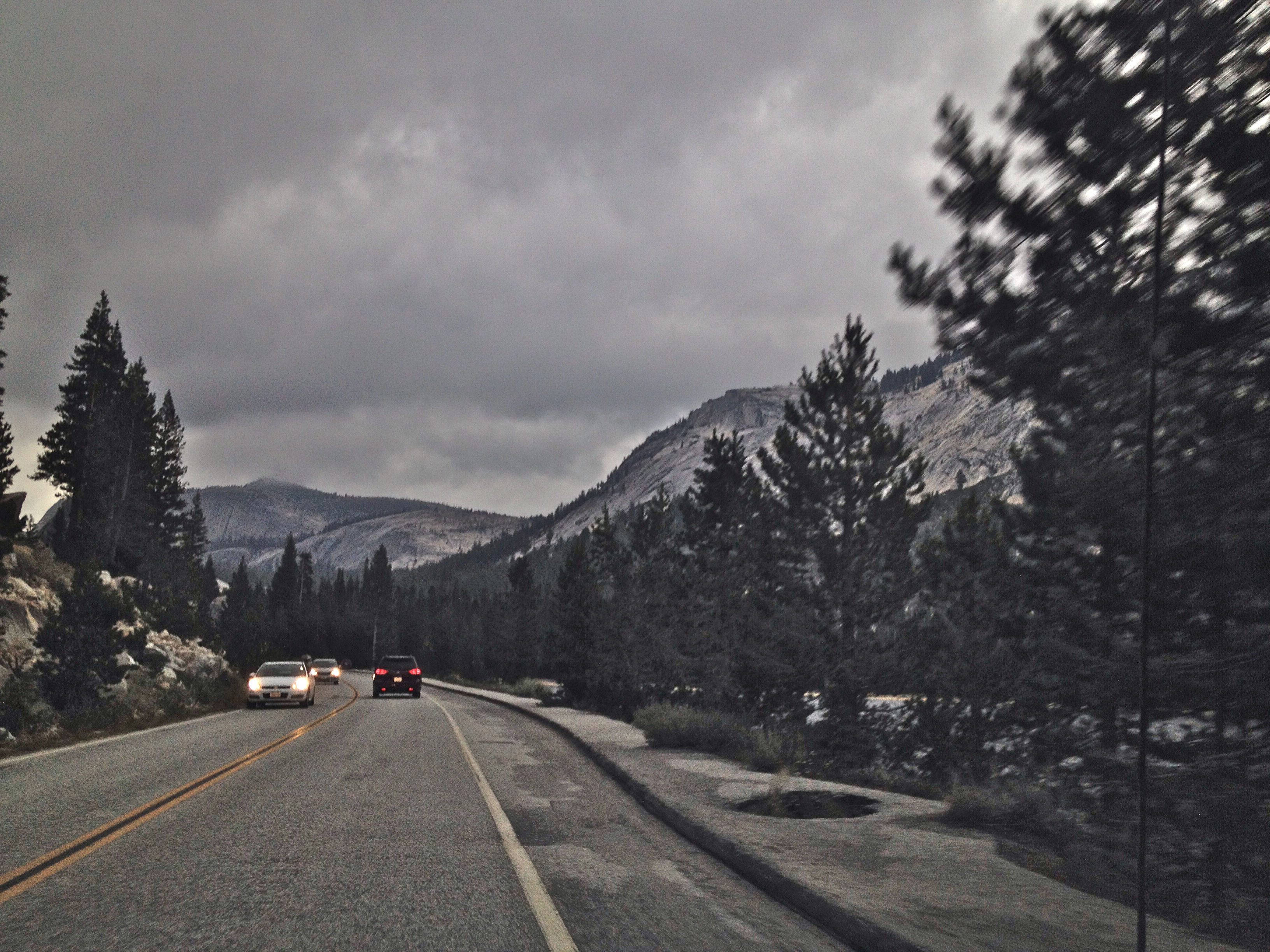 We got some rain, however, which was very welcomed! Here’s a shot as we are passing Tenaya Lake just before Tuolumne Meadows. Yay, almost there!