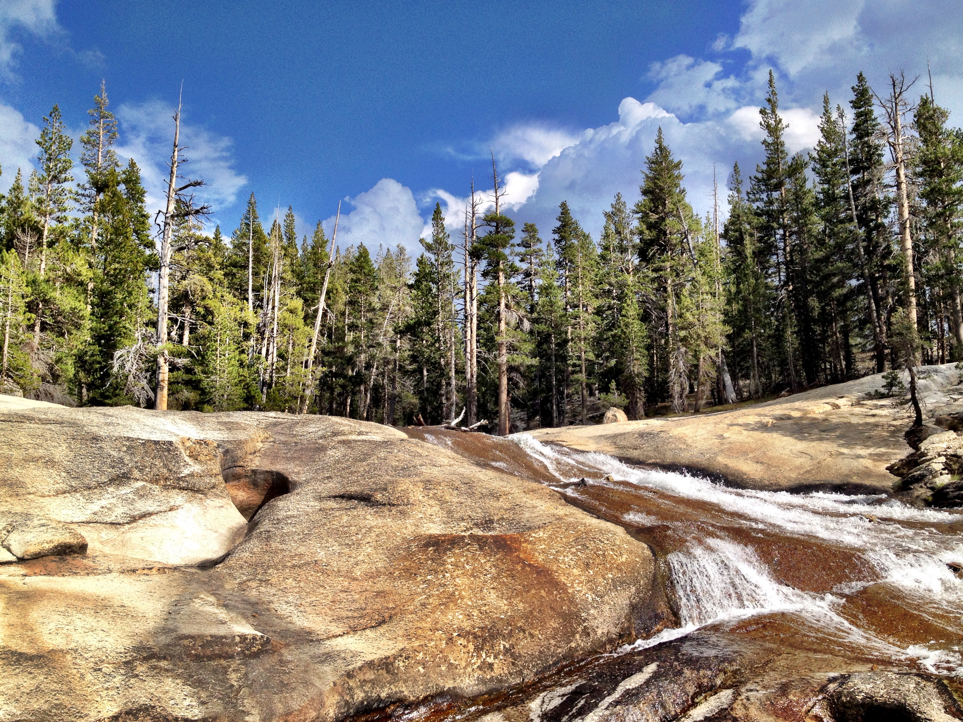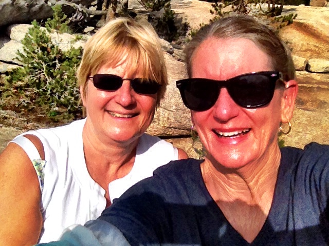 Here’s what’s fun: My childhood friend Betsy and her family also come to Yosemite every year and for the last few, we’ve overlapped our time there. They stay in the housekeeping cabins in the Valley so it’s not easy to hook up. Last year, Jim and I hiked down to the valley from Olmstead Point to meet them–great but hard on the knees, and then we took the YART bus back to Tuolumne for a very long but nice day. This year, Betsy agreed to drive up and meet us for dinner at the lodge. We had a few hours to hang out, so I took her to two favorite river spots within walking distance of the cabins. She was duly impressed, both by the jaw dropping beauty, as well as the lack of people.