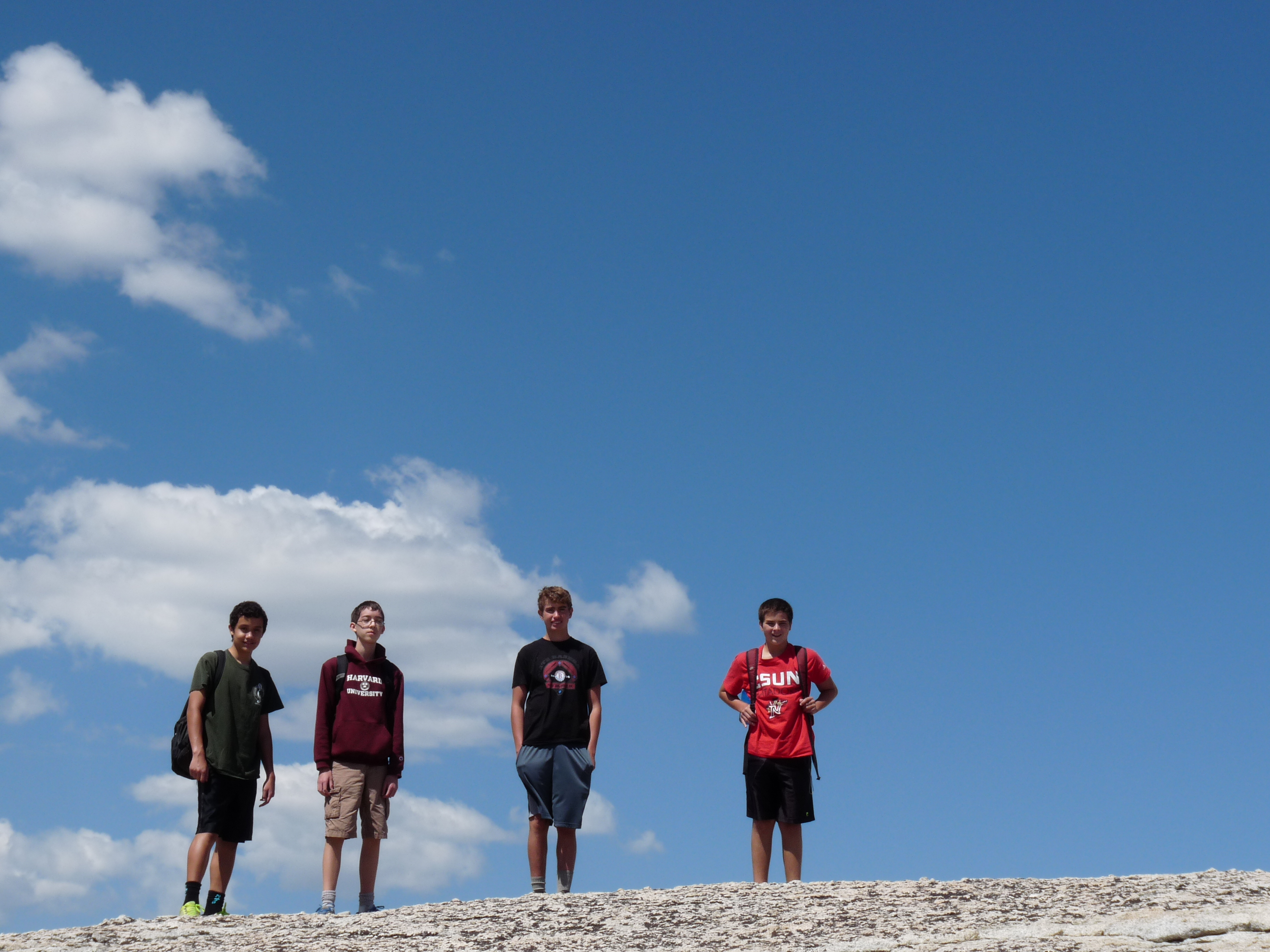 Here are the boys taking a breather before the final granite ascent, Matthew, Tyler, Dean, Jeffrey, Peter (and John in back):