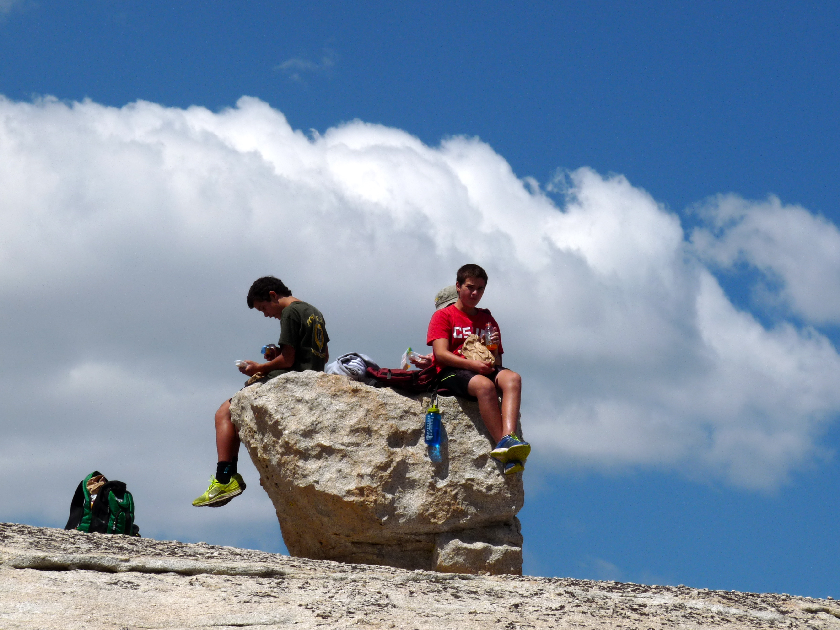 So… with five boys pooped out from the day at Spillway yesterday, today was an easy day with a modest thrill-filled dome scramble, and a stop at the Tuolumne Meadows diner counter for burgers, fries and soft serve–the chill portion of the program, and a predictable hit with early teen crowd.