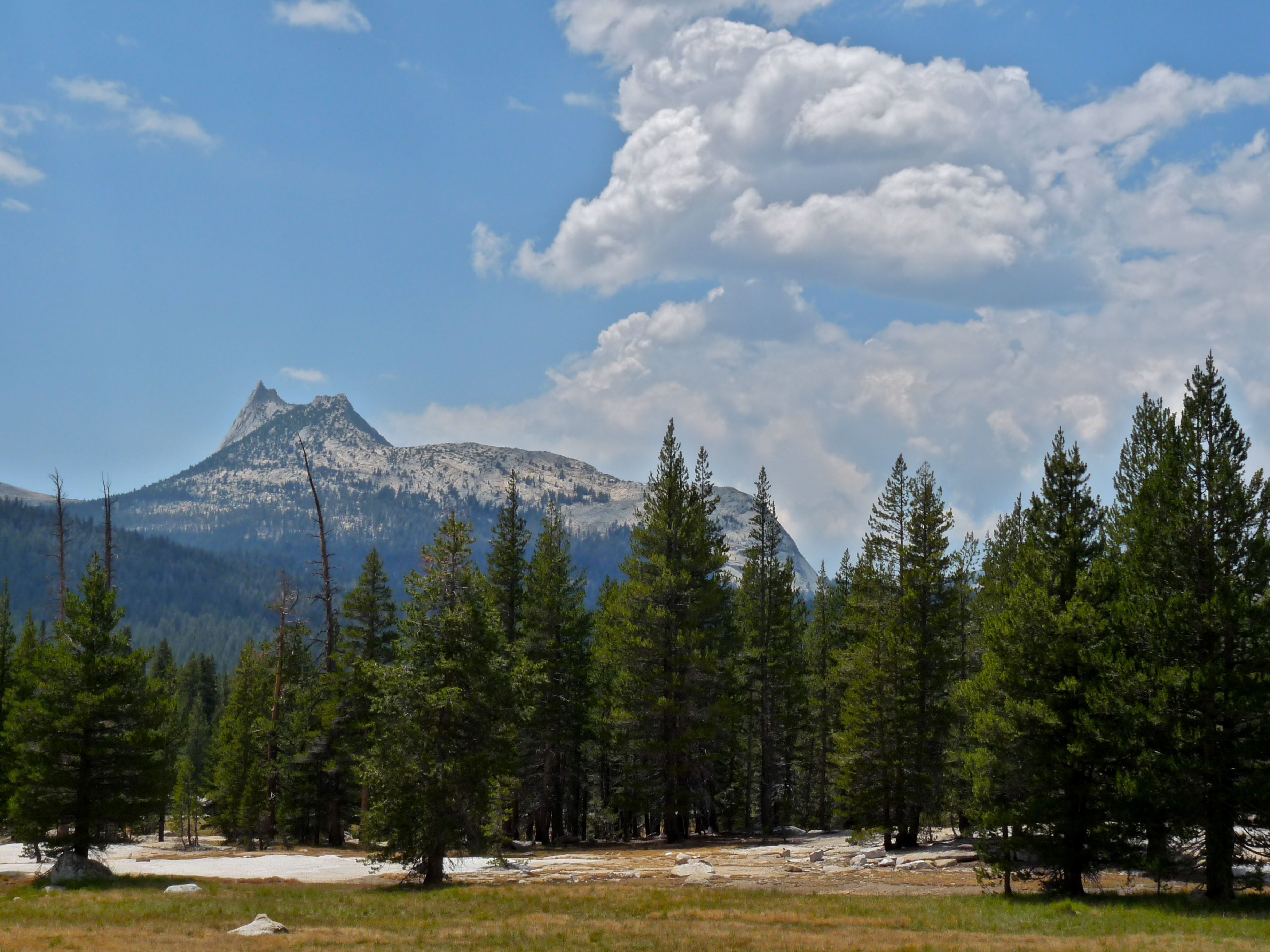 And once free of the forest, this is the view you get west toward the meadow.. that’s Cathedral Peak in distance:
