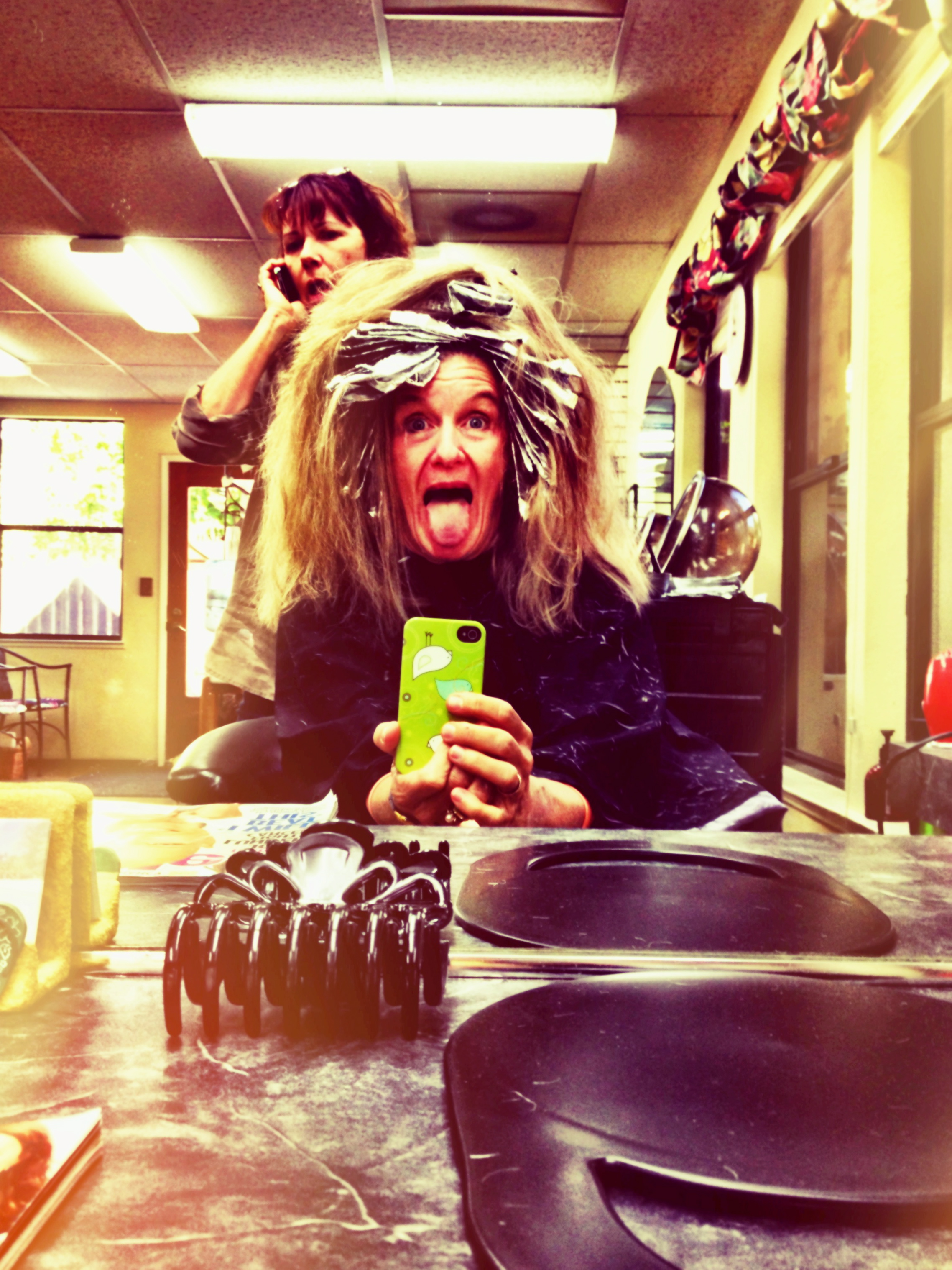 And funny face #2, a selfie taken this afternoon at Carrie my 30-year+ stylist’s place:
