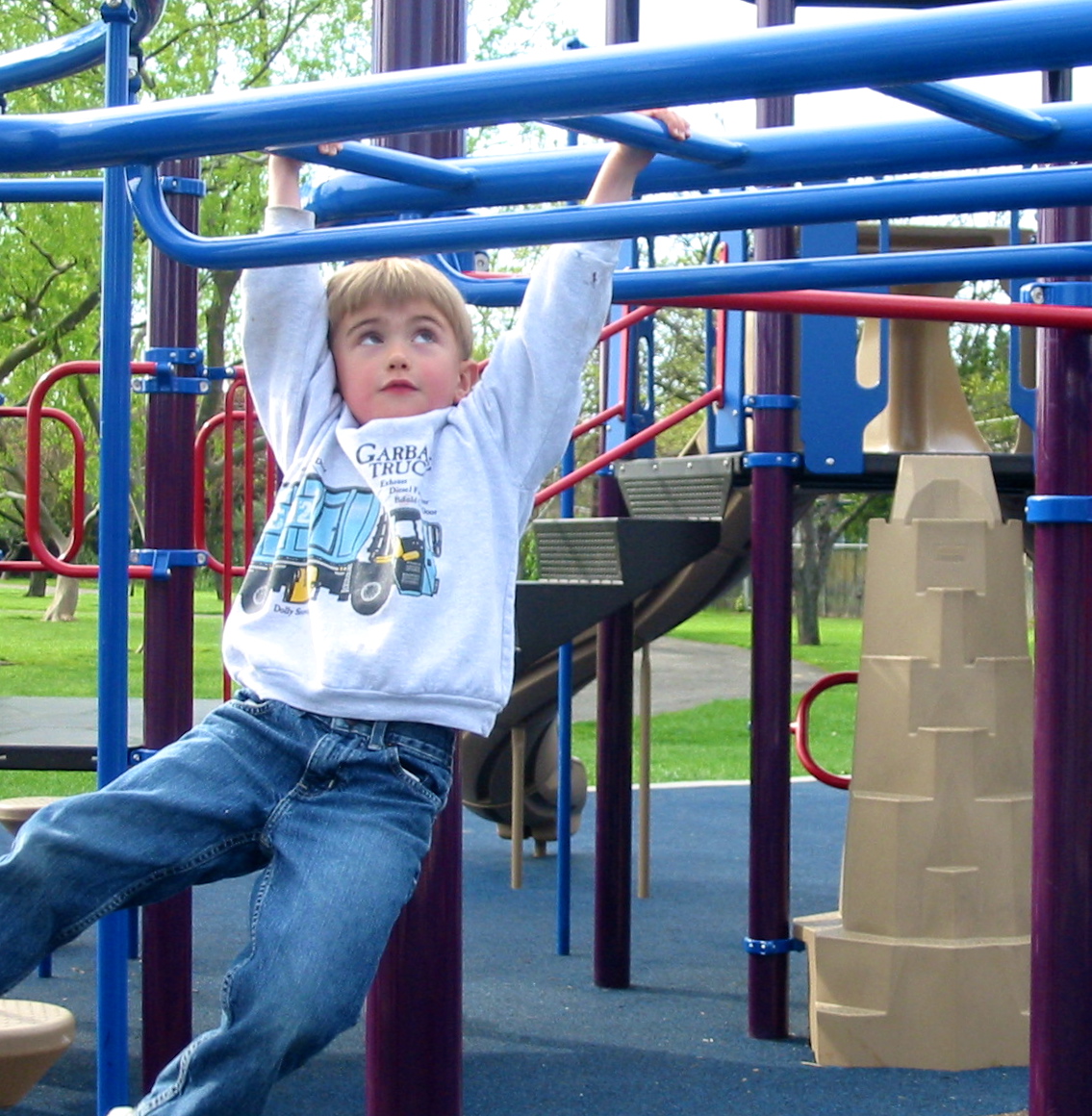 Handy that this otherwise non-remarkable, if unexpectedly enjoyable, day should also be a Thursday. Because, wuhoo, TBT. Picked a few from a series I took in the spring of 2003, a few months before Peter entered kindergarten. Here he is trying out the big kid play equipment at Cesar Chavez: