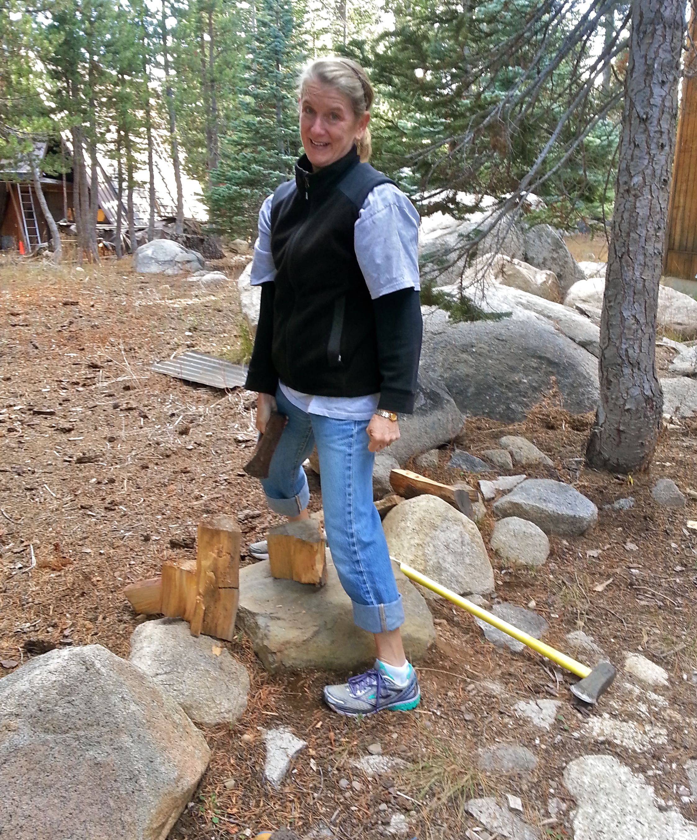 We needed both heat and something to cook on, so, while we had tons of wood for the wood burning stove, we needed some kindling. I split wood while Sally emptied and scrubbed down the fridge.