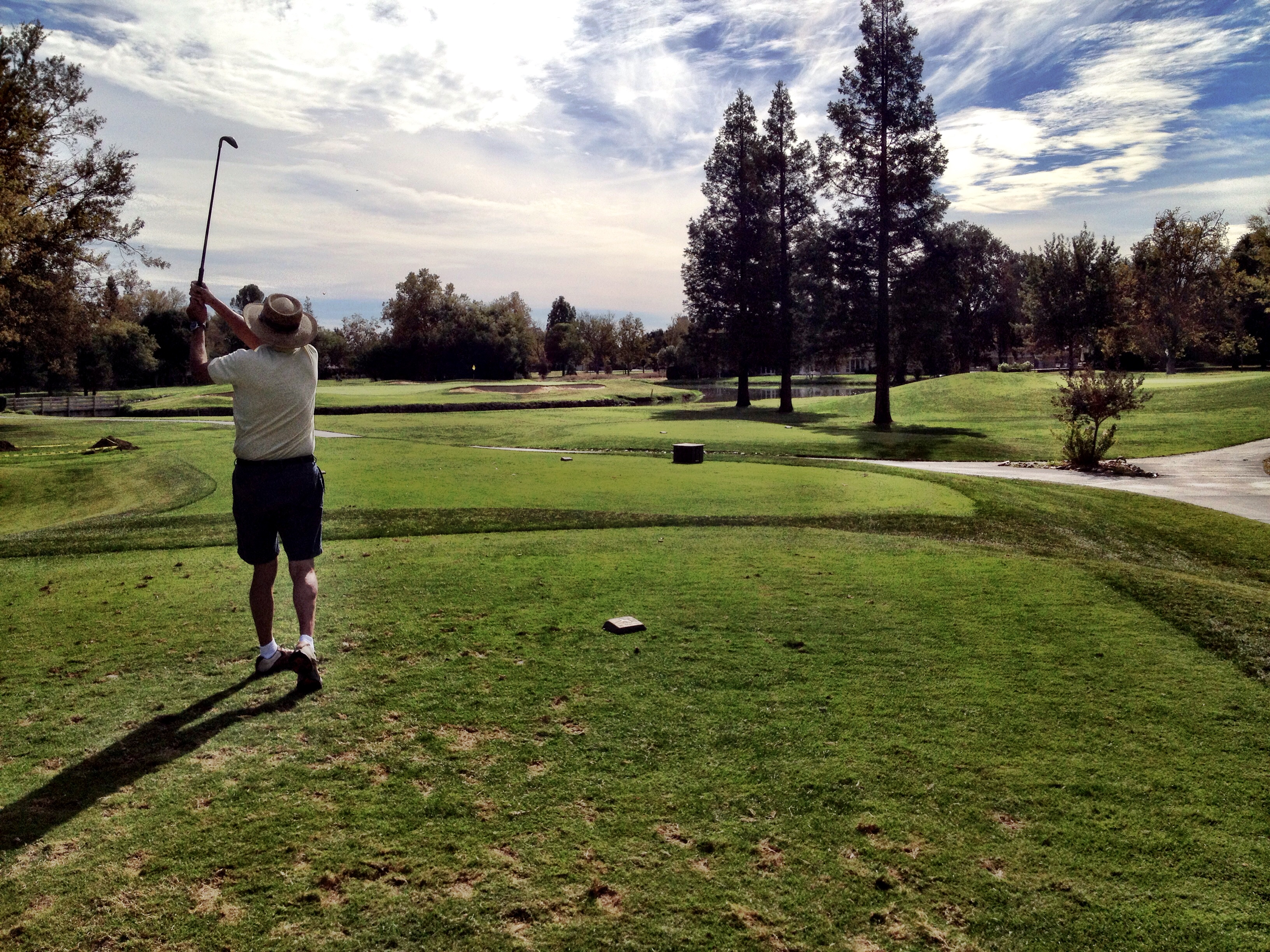 Here’s John teeing off on an incredibly lovely fall afternoon: