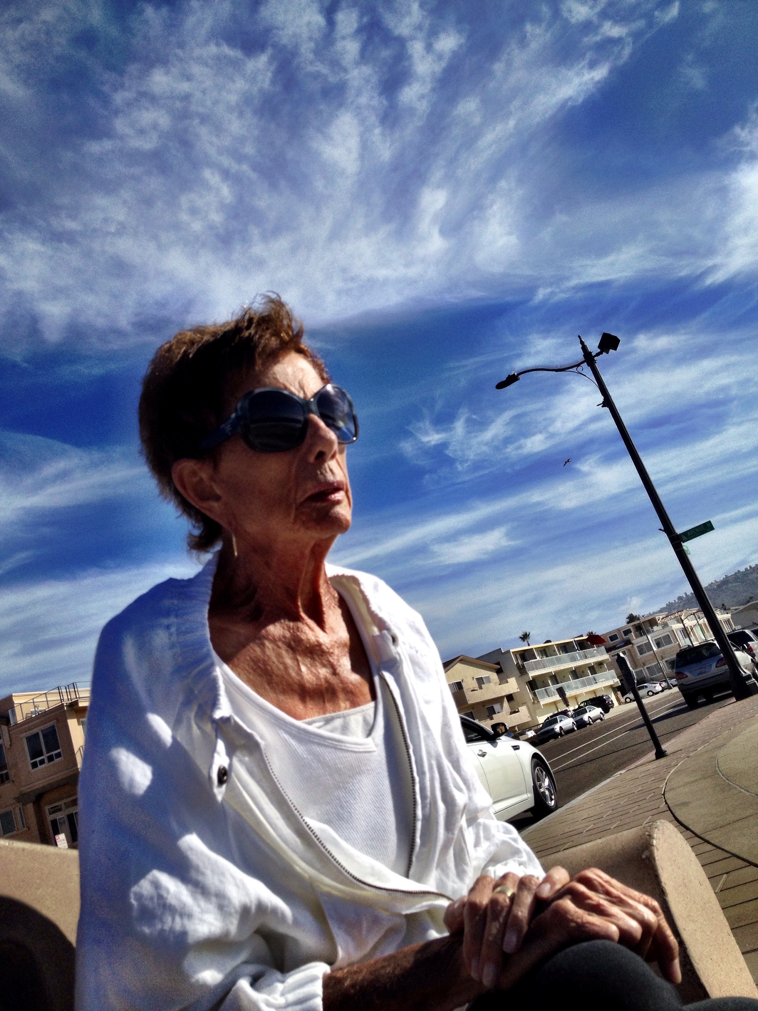 Mom has been very unstable on her feet, so no walking today, and maybe not this entire trip, but we did settle ourselves for a good long time on this bench at about Avenue F.