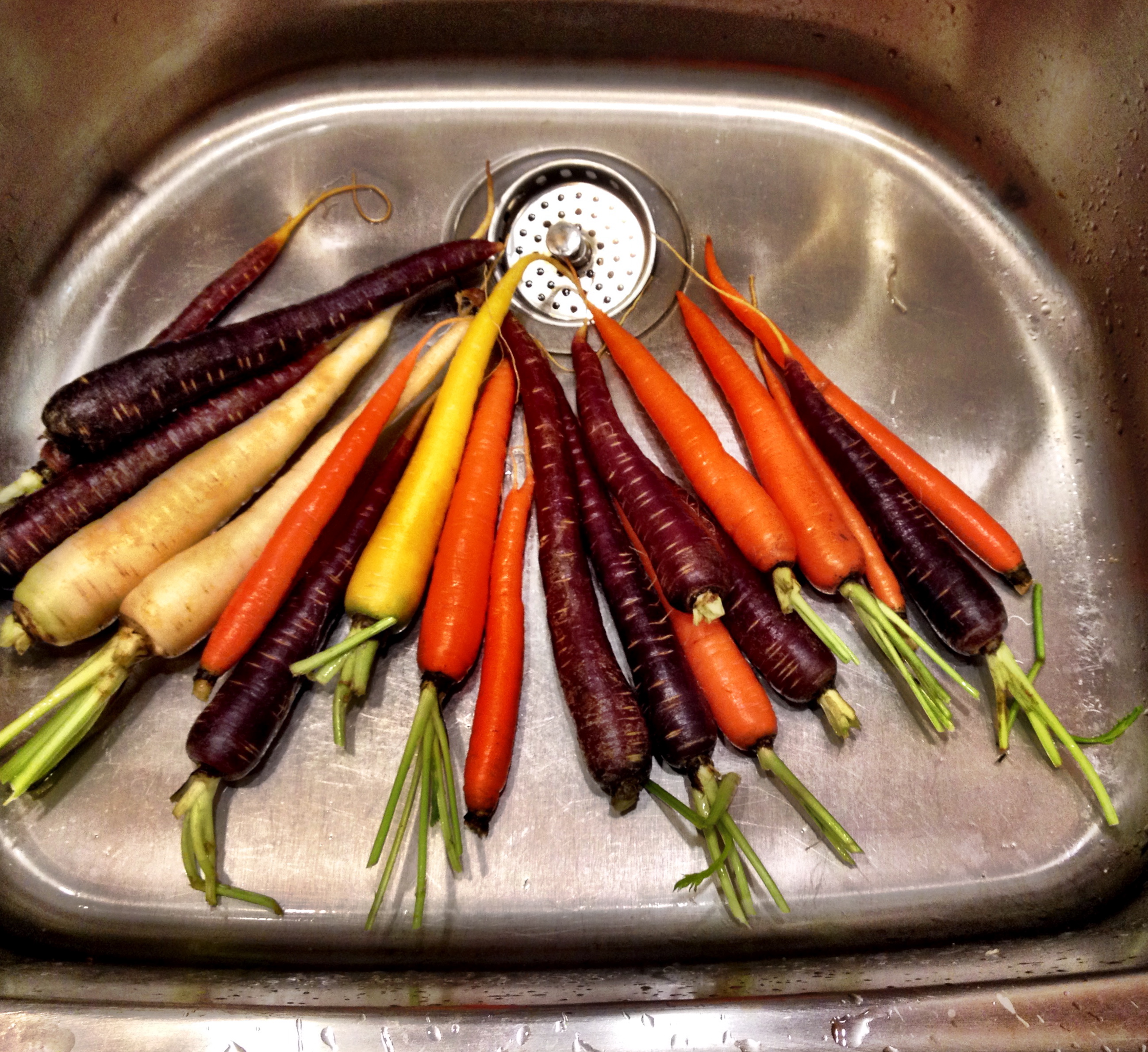 Then the best of all… another new one that I picked from the guys who do the Bitten Word blog. The recipe is from the current Bon Appetit and it looks wild. First you start with rainbow carrots: