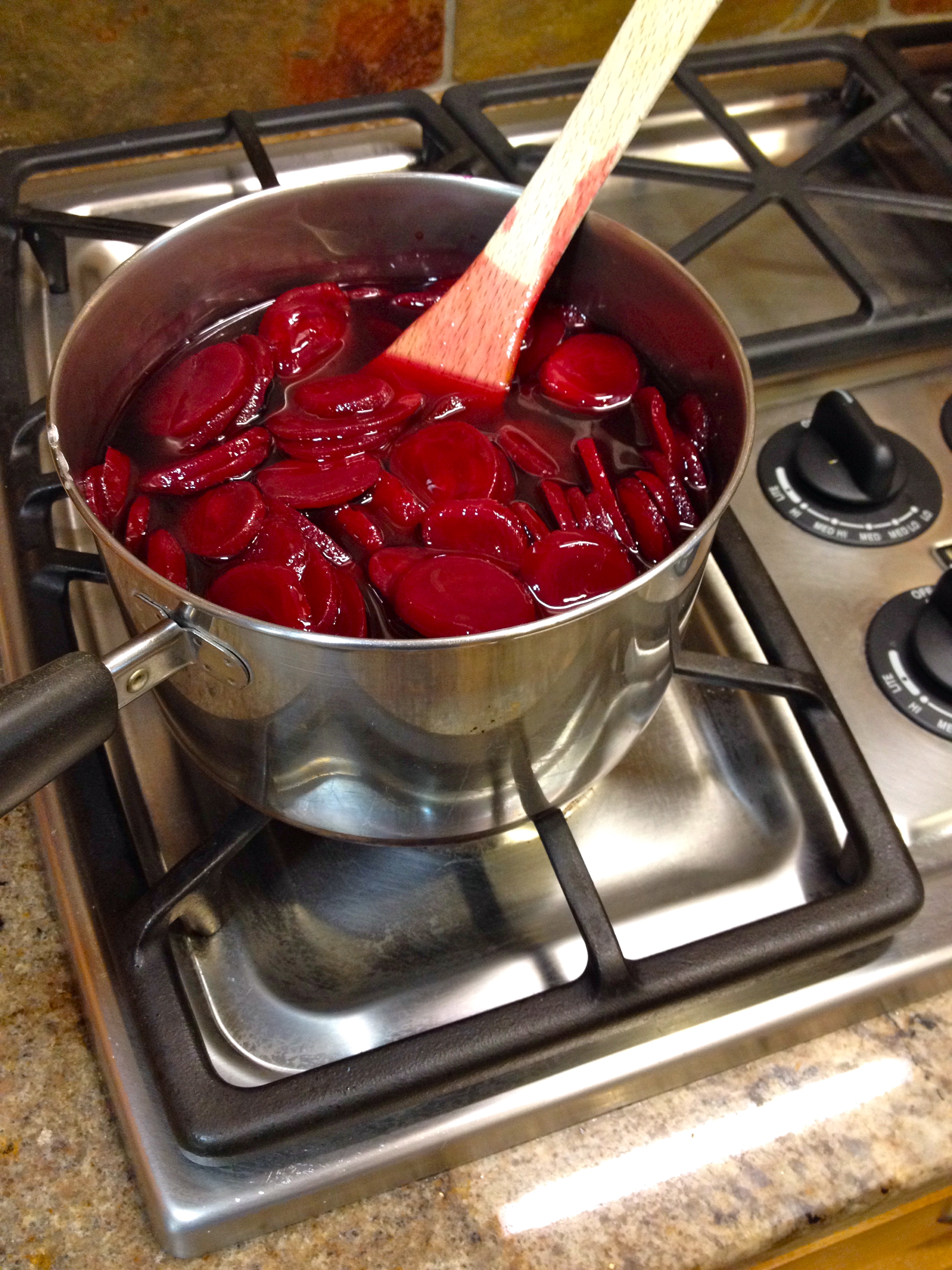 Then my grandma’s favorite (and we thought everyone ate these things, but I’ve never run into anyone else who does), Harvard Beets… sugar, vinegar, cornstarch… that’s it. Very zingy.
