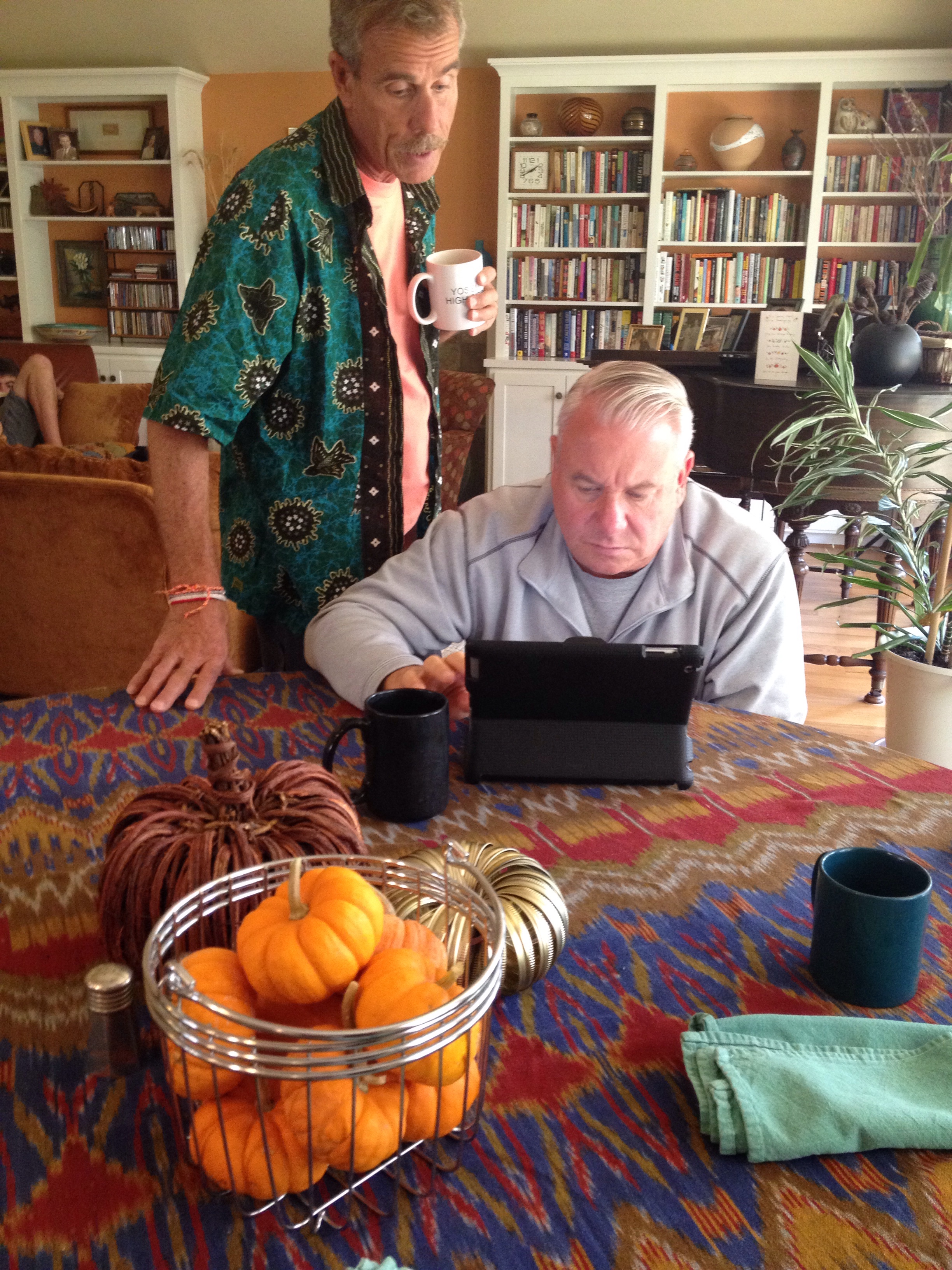 Chris dozing by the fire, Jay showing Jim pictures on iPad…