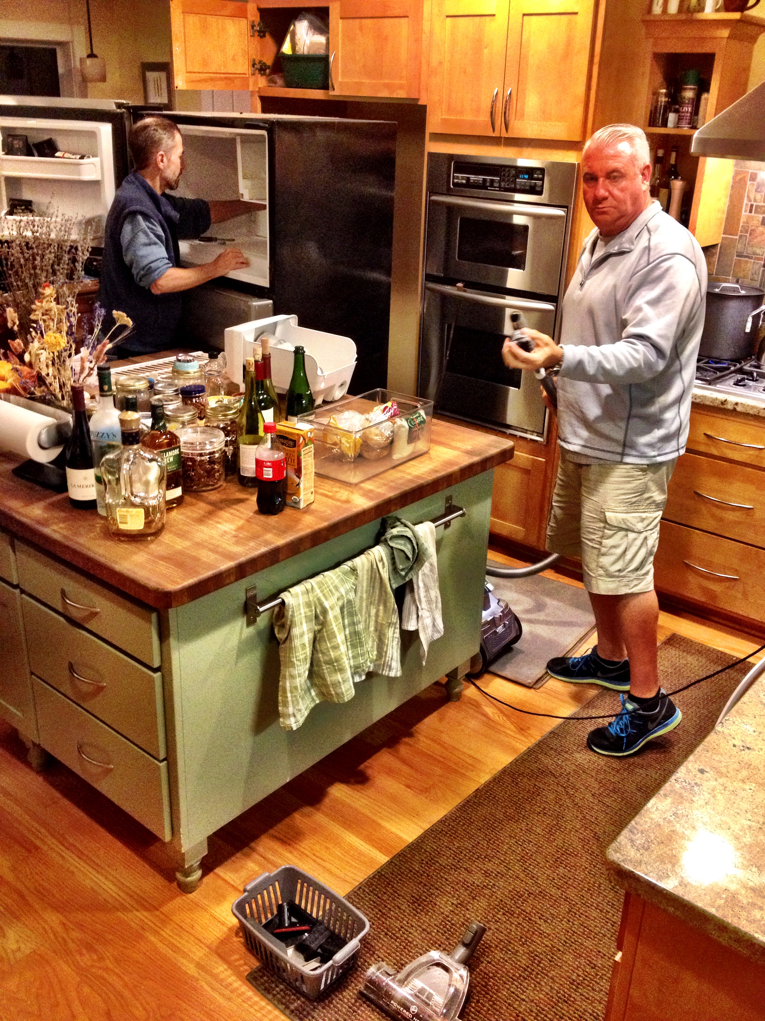 The refrigerator crapped out. All day it looked and sounded fatigued and gave me a bit of worry. When Jim finally came to, when whatever it was passed (at about 10pm), he investigated and reported that something froze up in the freezer (not in a good way) and was compromising the cooling capacity of the refrigerator. Or some such. So he and Matt went to work: pulled out unit, removed all the food from the freezer, put as much as would fit into the refrigerator (like we have room on Thanksgiving, what with dozens of containers of food and leftovers and whatnot.. remember FIVE pies.