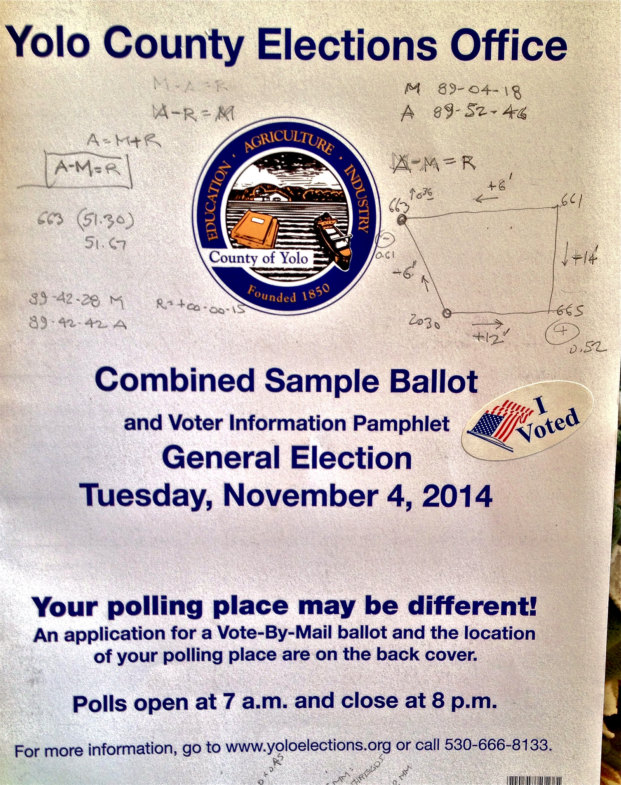 No idea what this is all over my sample ballot. Somebody in the house used it to calculate something…