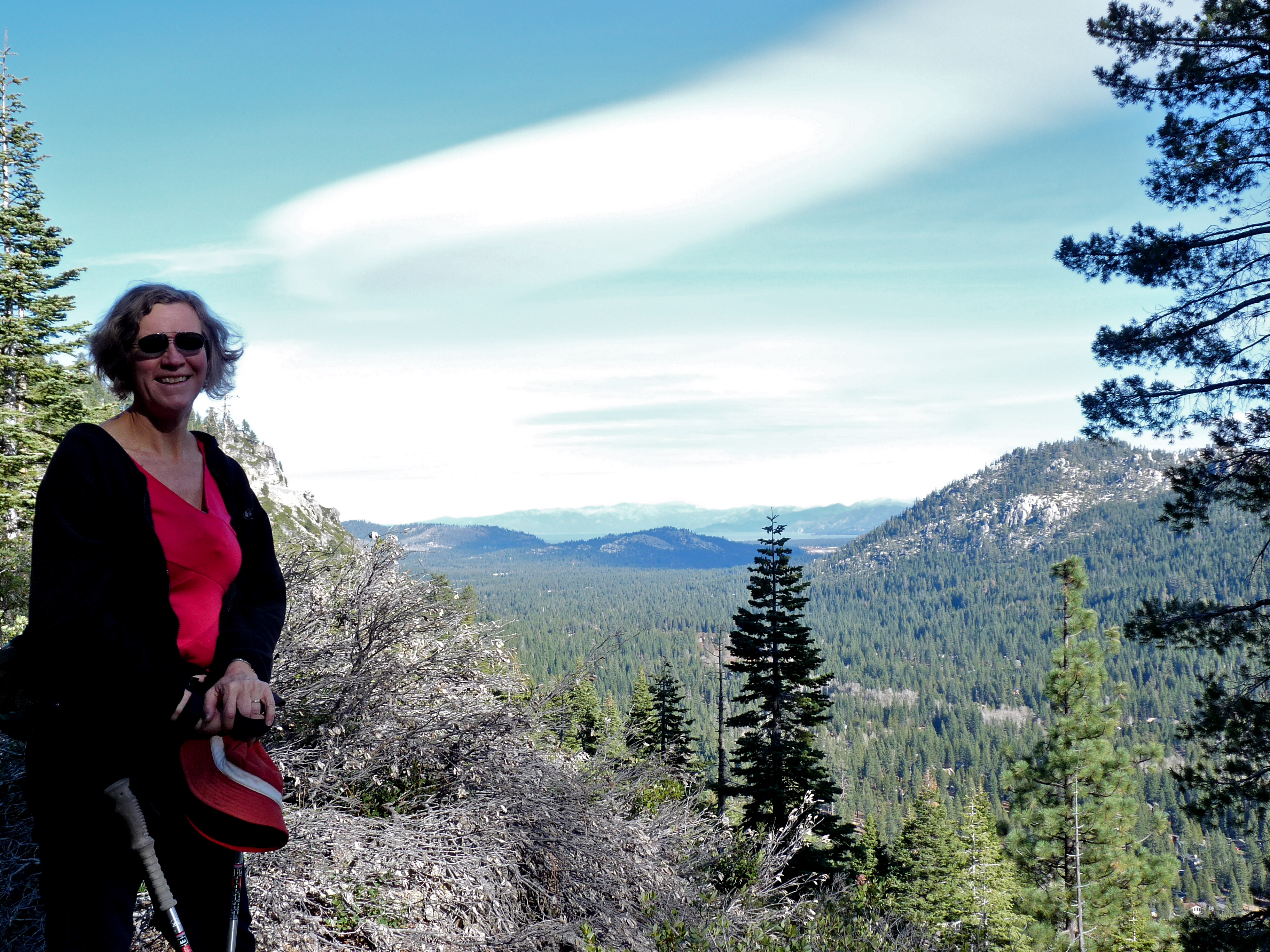 Got a little gift of a hike today. Didn’t expect it, so it was extra appreciated. We are four: Carrie, Gail, Julie and me at a cabin near South Lake Tahoe. I am along for the ride, a fourth wheel on a tricycle, willing to do whatever these guys do when they come up here, it’s all good. I brought hiking stuff in case, and so it was. Only Julie and I were interested though.